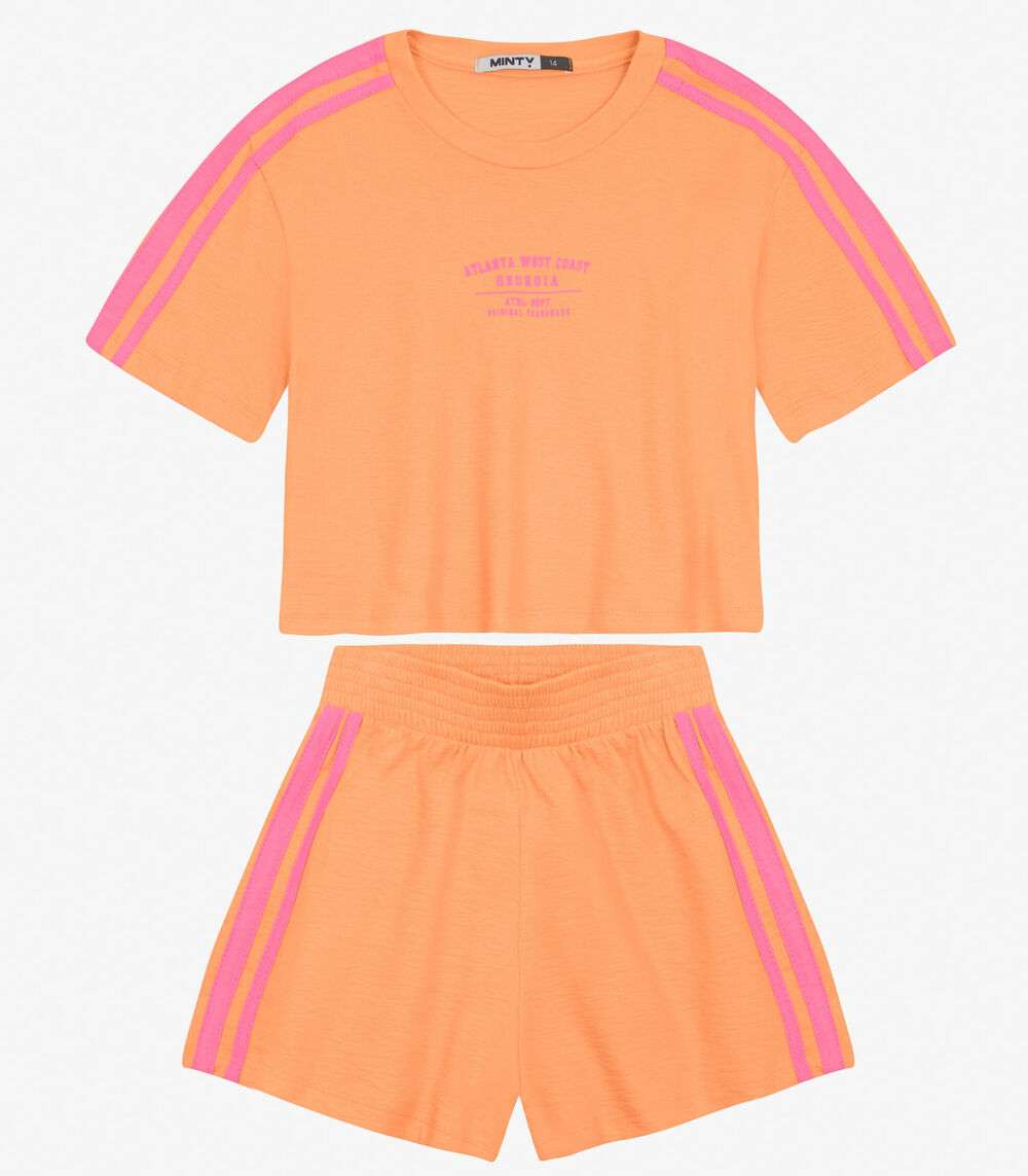 Conjunto Juvenil Blusa Com Shorts Moletinho Minty Laranja