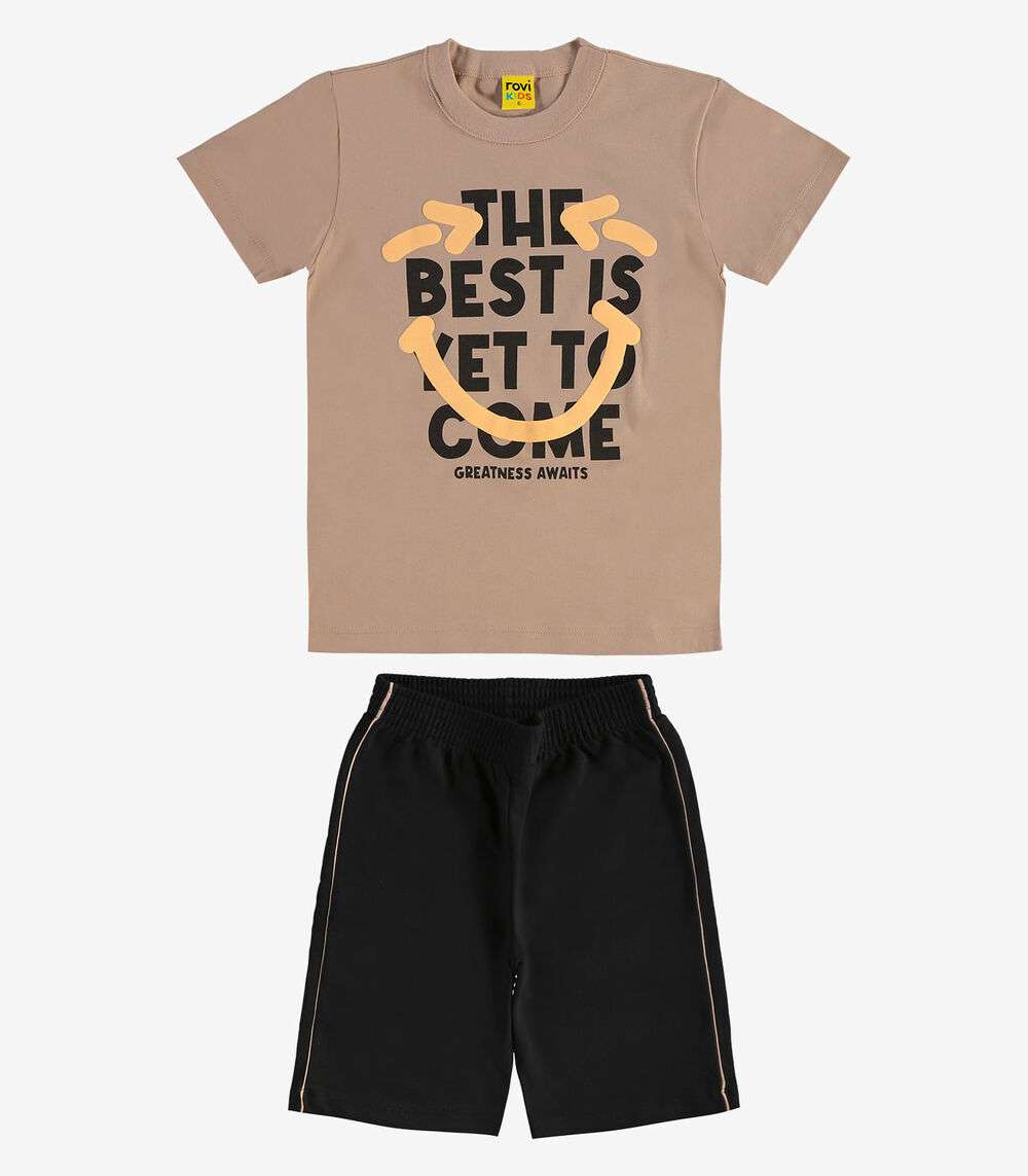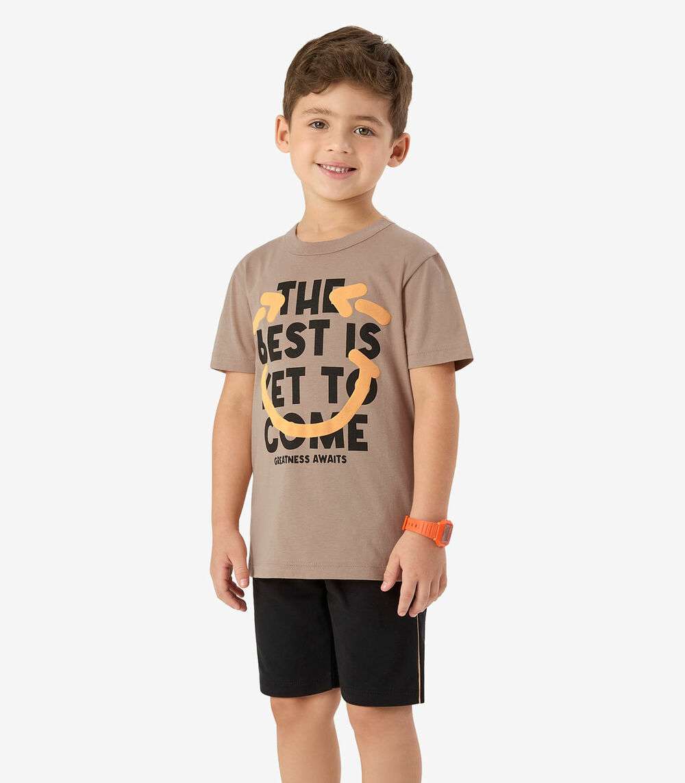 Conjunto Machão c Bermuda em Meia Malha Rovi Kids Marrom