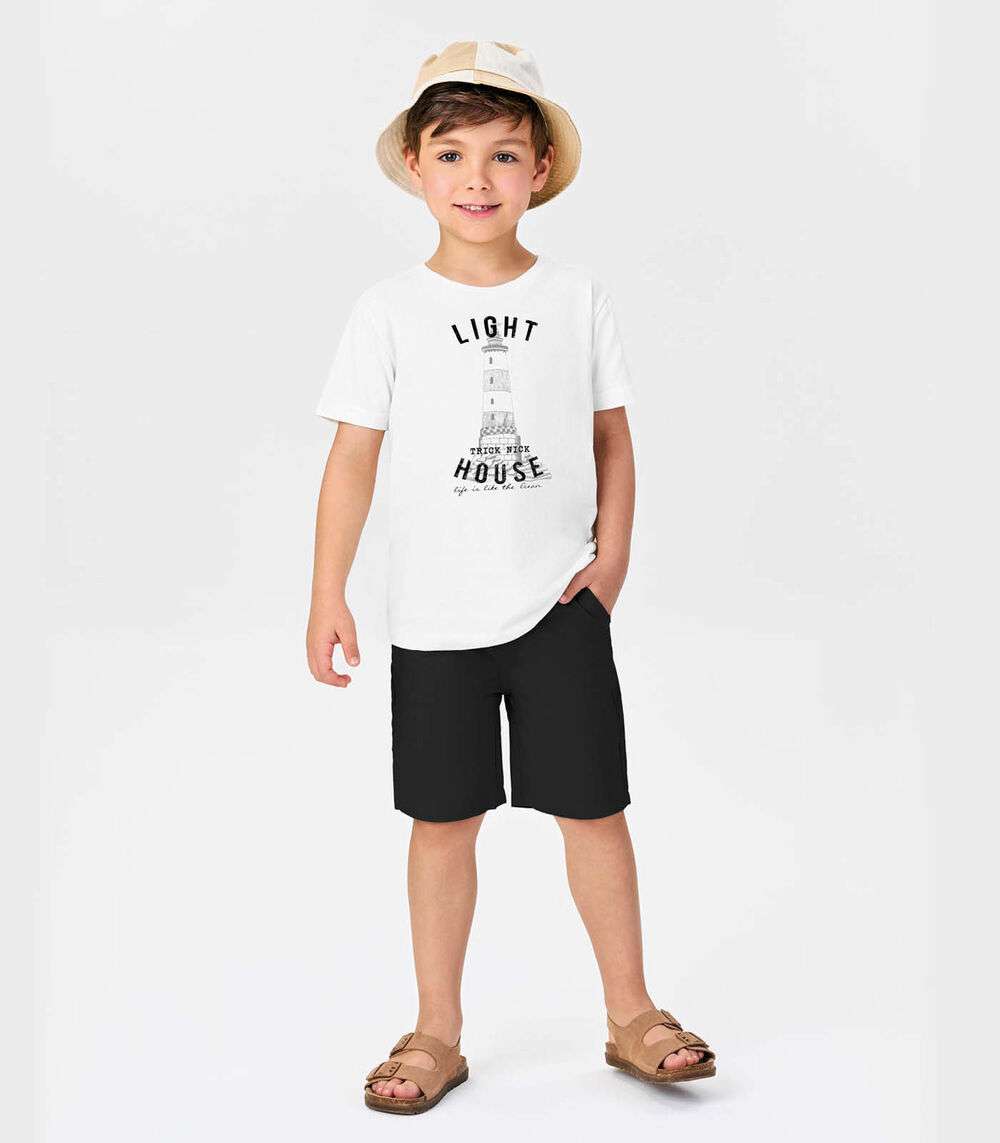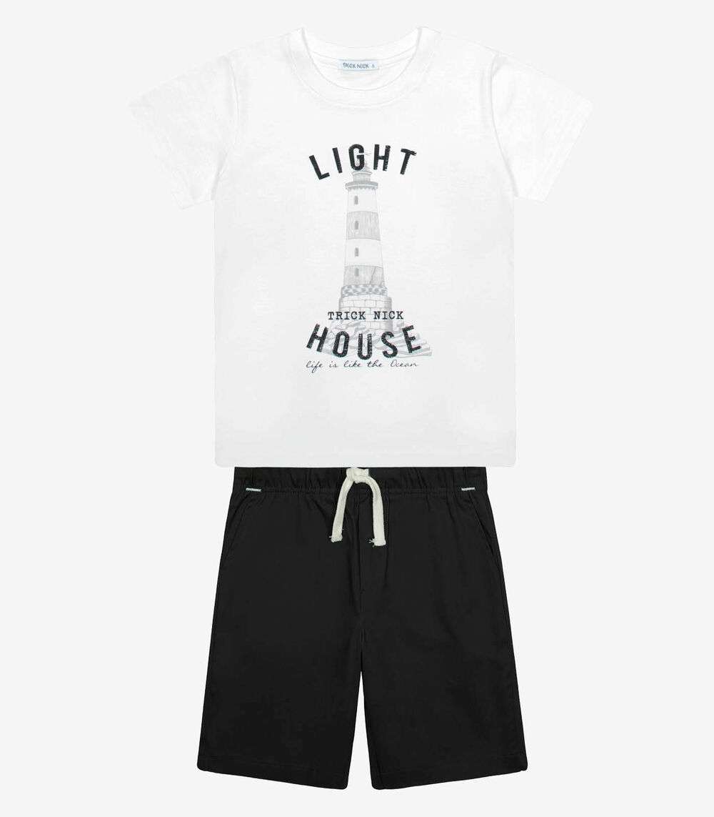 Conjunto Menina Camiseta Com Bermuda Trick Nick Branco