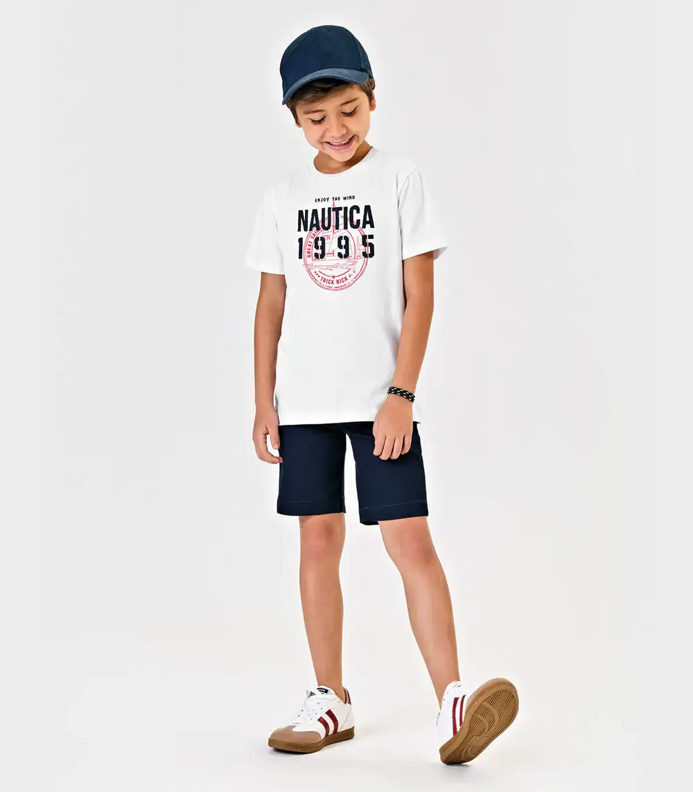 Conjunto Menino Camiseta Com Bermuda Trick Nick Branco