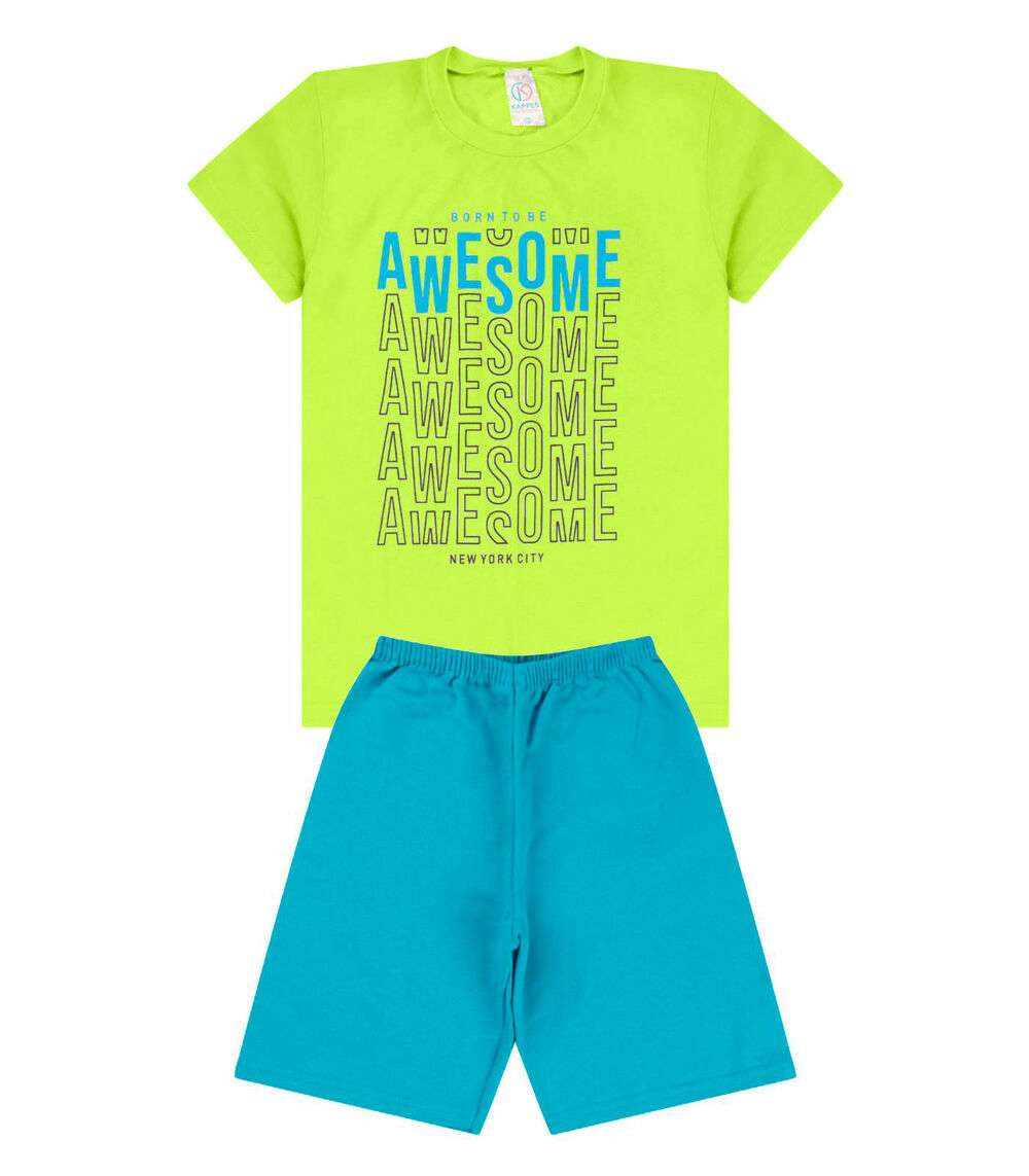 Conjunto Menino Meia Malha Estampado. Dê ao seu pequeno a combinação perfeita de conforto e estilo! Ideal para todas as ocasiões, esse conjunto possui uma camisa em meia malha de alta qualidade e uma bermuda em moletinho sublimado, que oferece uma sensação macia e respirável para a pele delicada dos meninos.