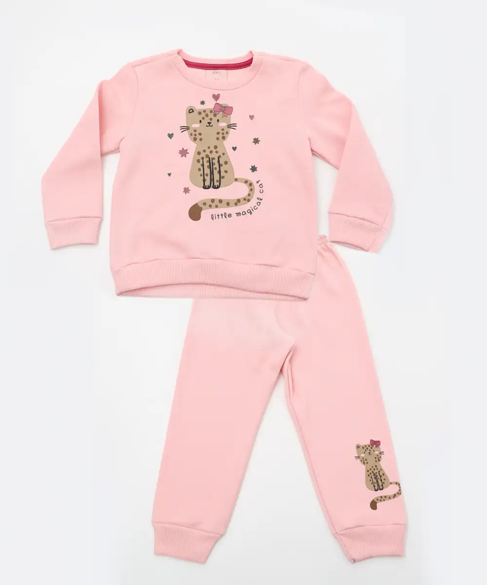 Conjunto Moletinho Infantil Gato Marisa Tam 1 a 3 Rosa