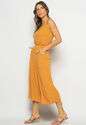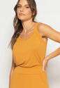 Conjunto Regata Drapeada e Saia Midi Malha Caramelo Salvatore