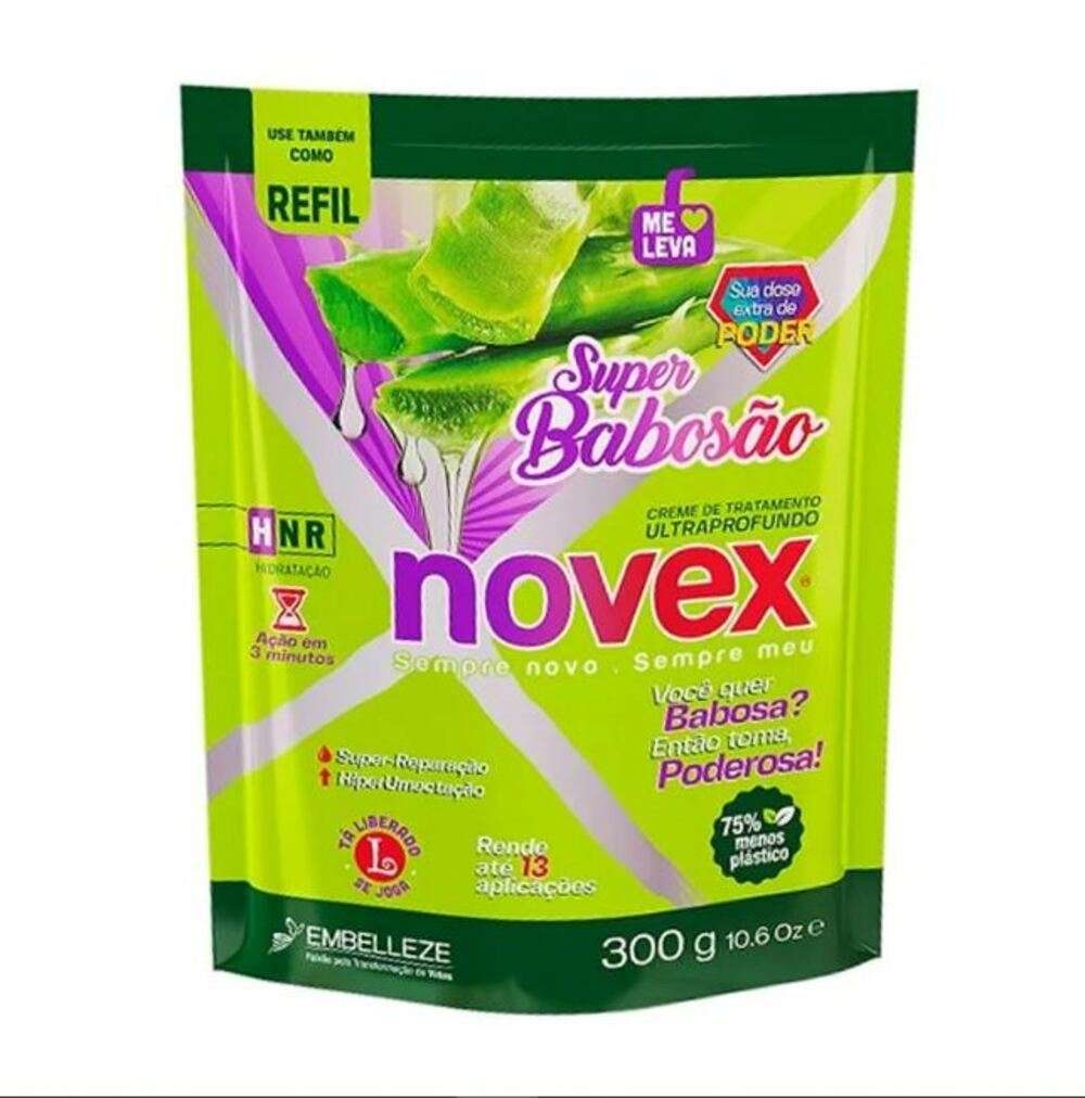 Creme de Tratamento Novex Super Babosão Refil 300g é a solução perfeita para cabelos que precisam de um cuidado intensivo e nutritivo. Com uma fórmula rica em óleos e extratos naturais, este creme proporciona uma hidratação profunda, promovendo a reparação dos fios danificados e ressecados. Indicação:Ideal para todos os tipos de cabelo, especialmente os que estão opacos ou com frizz. Tecnologia:Óleo de Coco: Hidrata e nutre profundamente, restaurando a vitalidade dos fios.Manteiga de Karité: Conhecida por suas propriedades emolientes, ajuda a deixar o cabelo macio e brilhante.Aminoácidos: Fortalecem a fibra capilar, prevenindo a quebra e promovendo um cabelo saudável.Benefícios:Hidratação intensaRedução do frizzCabelos mais macios e brilhantesReparação de danosFácil desembaraçoModo de uso:Após lavar os cabelos, aplique o Creme de Tratamento Novex Super Babosão generosamente nos fios ainda úmidos.Deixe agir por 10 a 20 minutos.Enxágue bem e finalize como desejar.Resultado:Cabelos extremamente hidratados, com brilho radiante e sem frizz, prontos para arrasar em qualquer ocasião! Composição: Aqua, Glycerin, Cetearyl Alcohol, Cocos Nucifera Oil, Butyrospermum Parkii Butter, Amino Acids, entre outros. Precauções:Armazenar em local fresco e ao abrigo da luz. Uso externo. Em caso de contato com os olhos, enxágue abundantemente. Mantenha fora do alcance de crianças. Informações Adicionais:Produto não testado em animais. Experimente o Creme de Tratamento Novex Super Babosão Refil 300g e transforme seus cabelos em um verdadeiro espetáculo de saúde e beleza!
