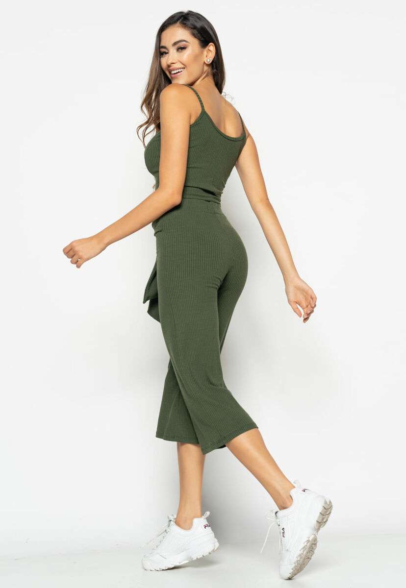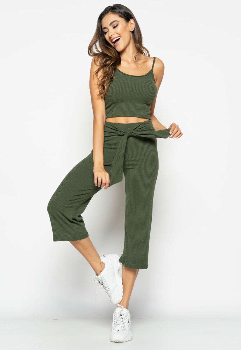 Cropped Alça Fina Canelado Verde Salvatore Fashion