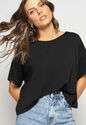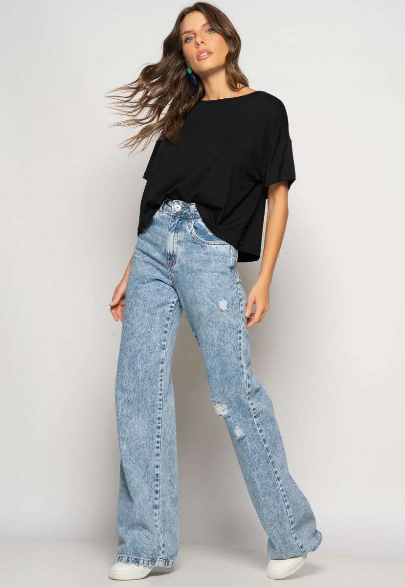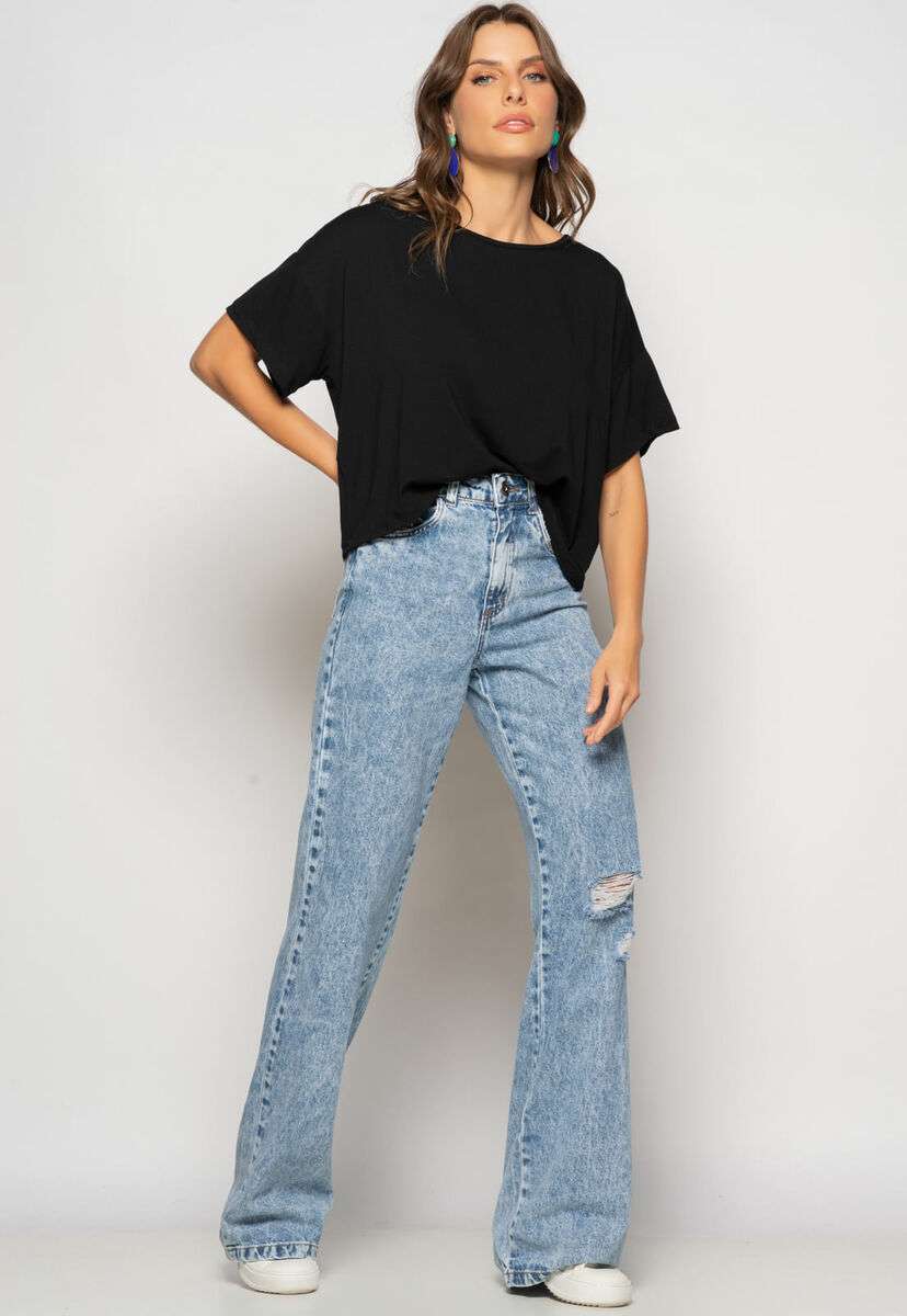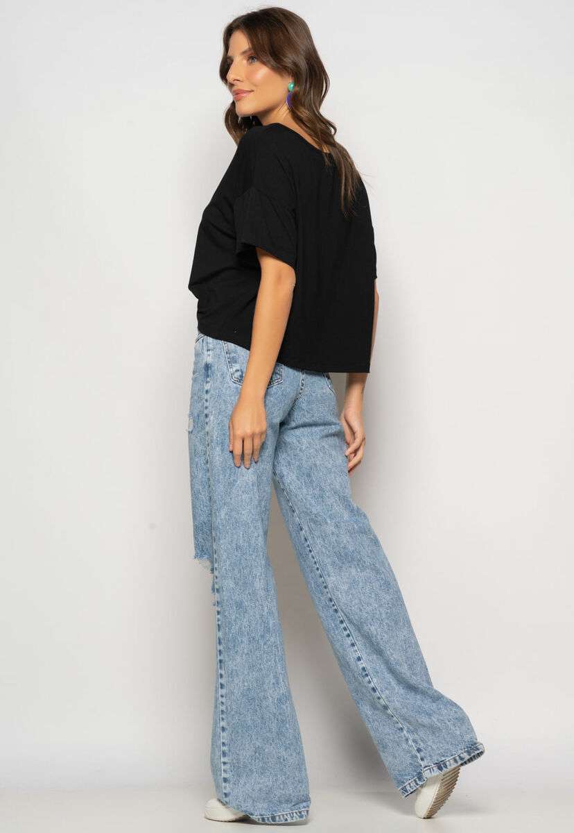Cropped Amplo Manga Curta Malha Preto Salvatore