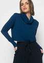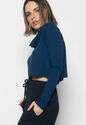 Cropped Golão Manga Longa Malha Fashion Azul