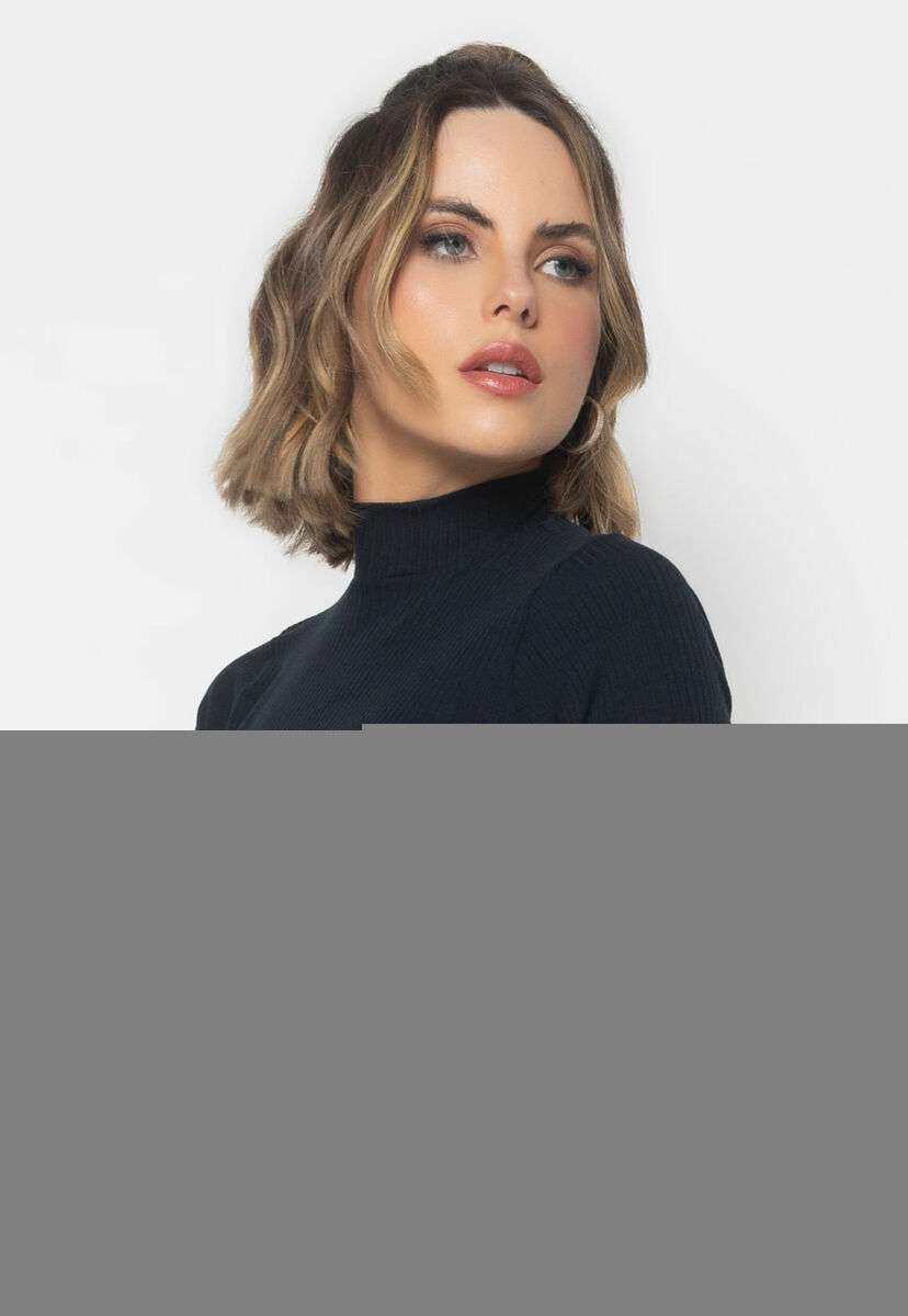 Cropped Gola Alta Comfy Malha Canelada Preto Salvatore Fashion