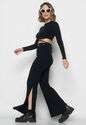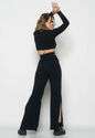 Cropped Gola Redonda Manga Longa Com Tiras Malha Canelada Fashion Preto