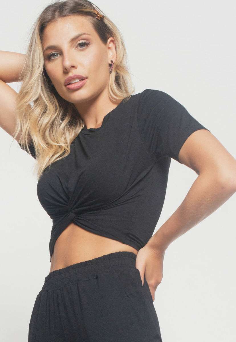 Cropped Manga Curta Com Detalhe Nó Malha Preto Salvatore Fashion