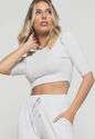 Cropped Princesa Gola Redonda Malha Canelada Branco Salvatore Fashion