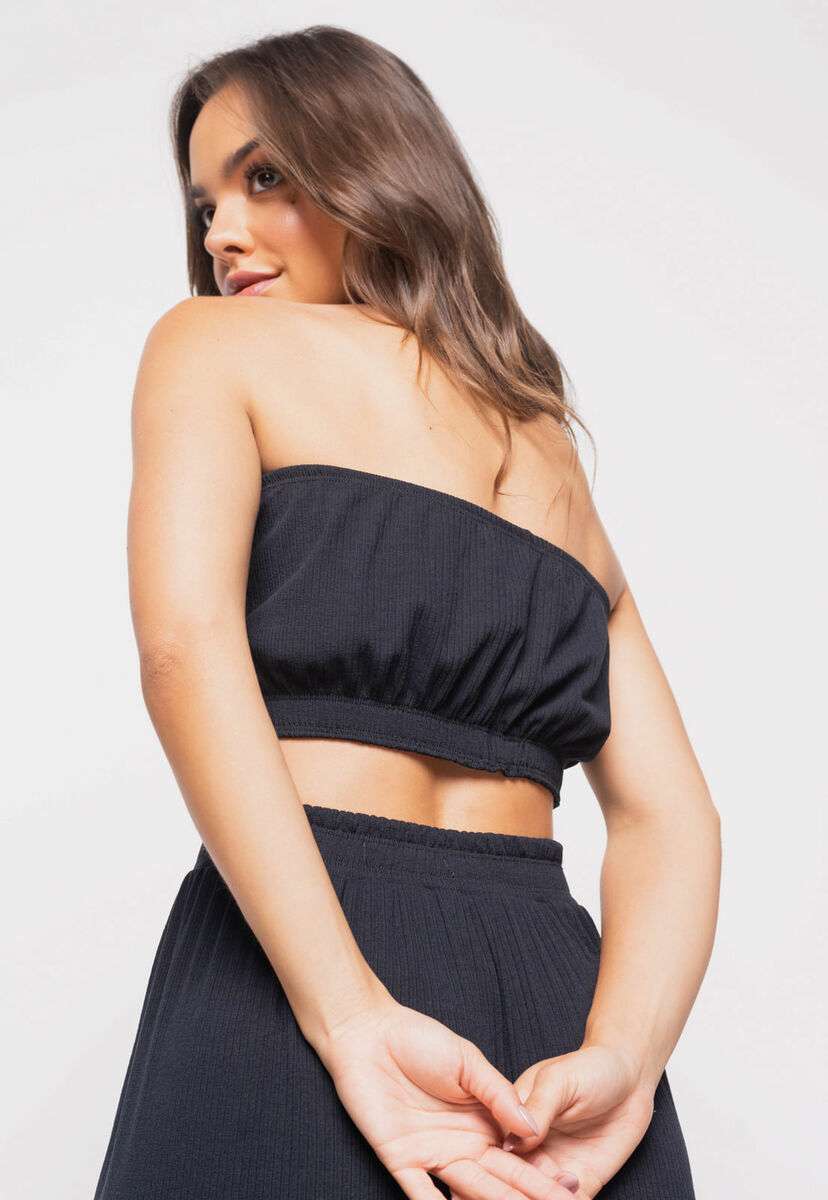 Cropped Tomara Que Caia Malha Canelada Preto