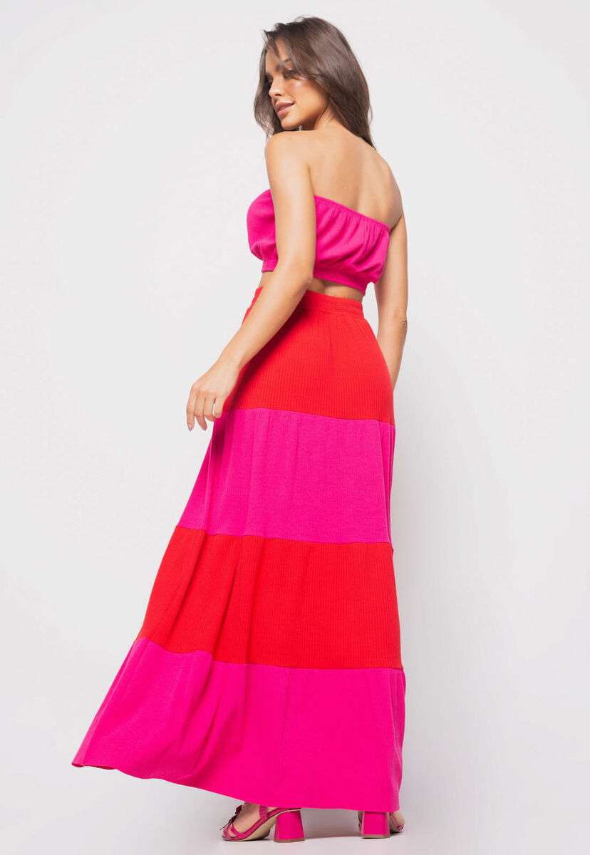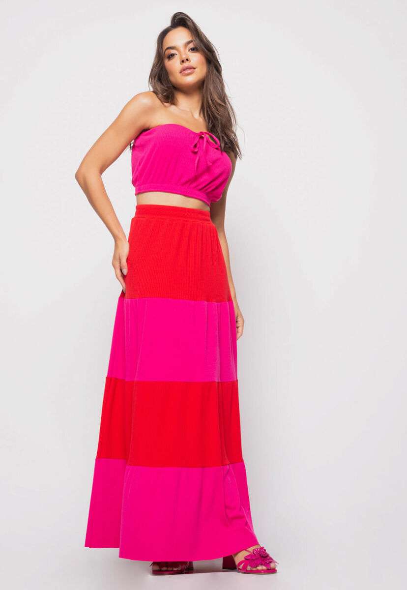 Cropped Tomara Que Caia Malha Canelada Rosa
