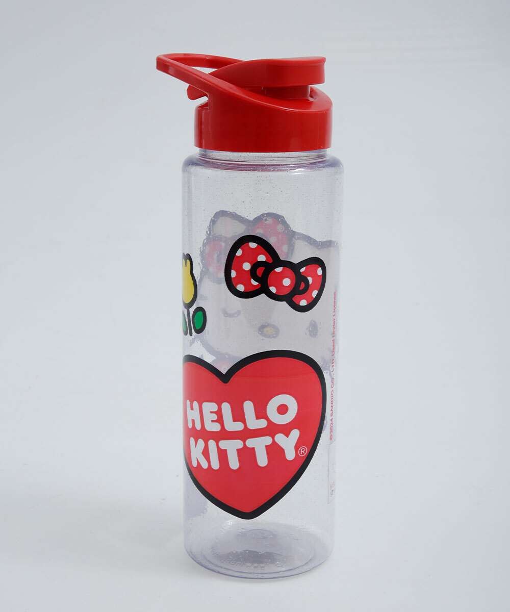 Garrafa squeeze infantil, confeccionada em plástico, capacidade para 750ml de líquido. Possui estampa Hello Kitty, fechamento por tampa giratória.