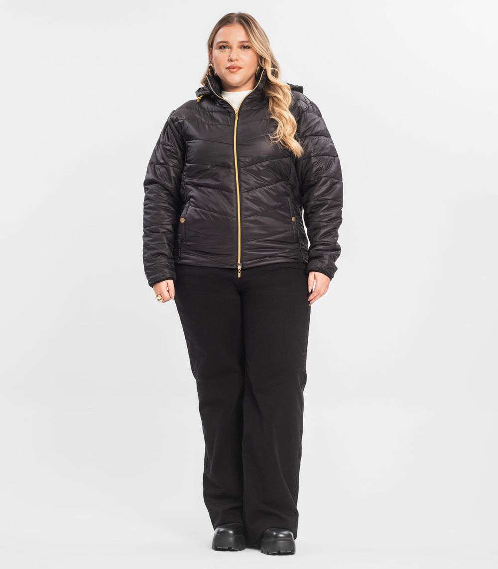 Jaqueta Com Capuz Plus Size Secret Glam Preto