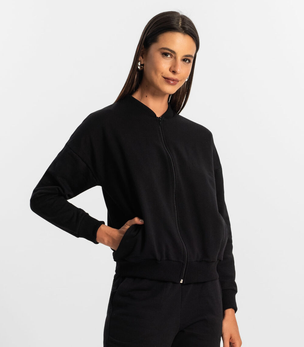 Jaqueta Feminina Básica de Moletom Rovitex Preto