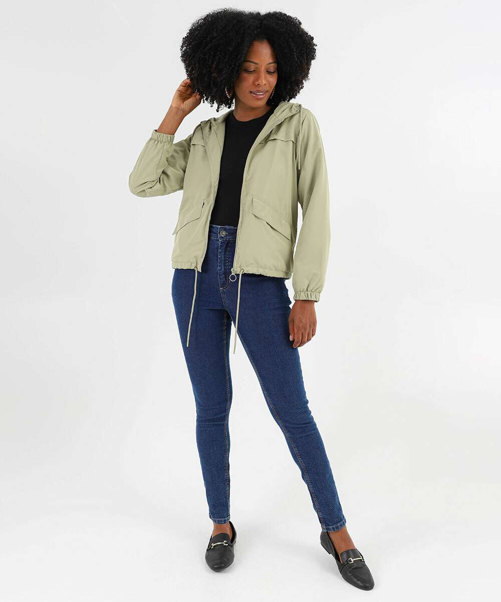 Jaqueta Feminina Corta Vento Capuz Marisa Verde