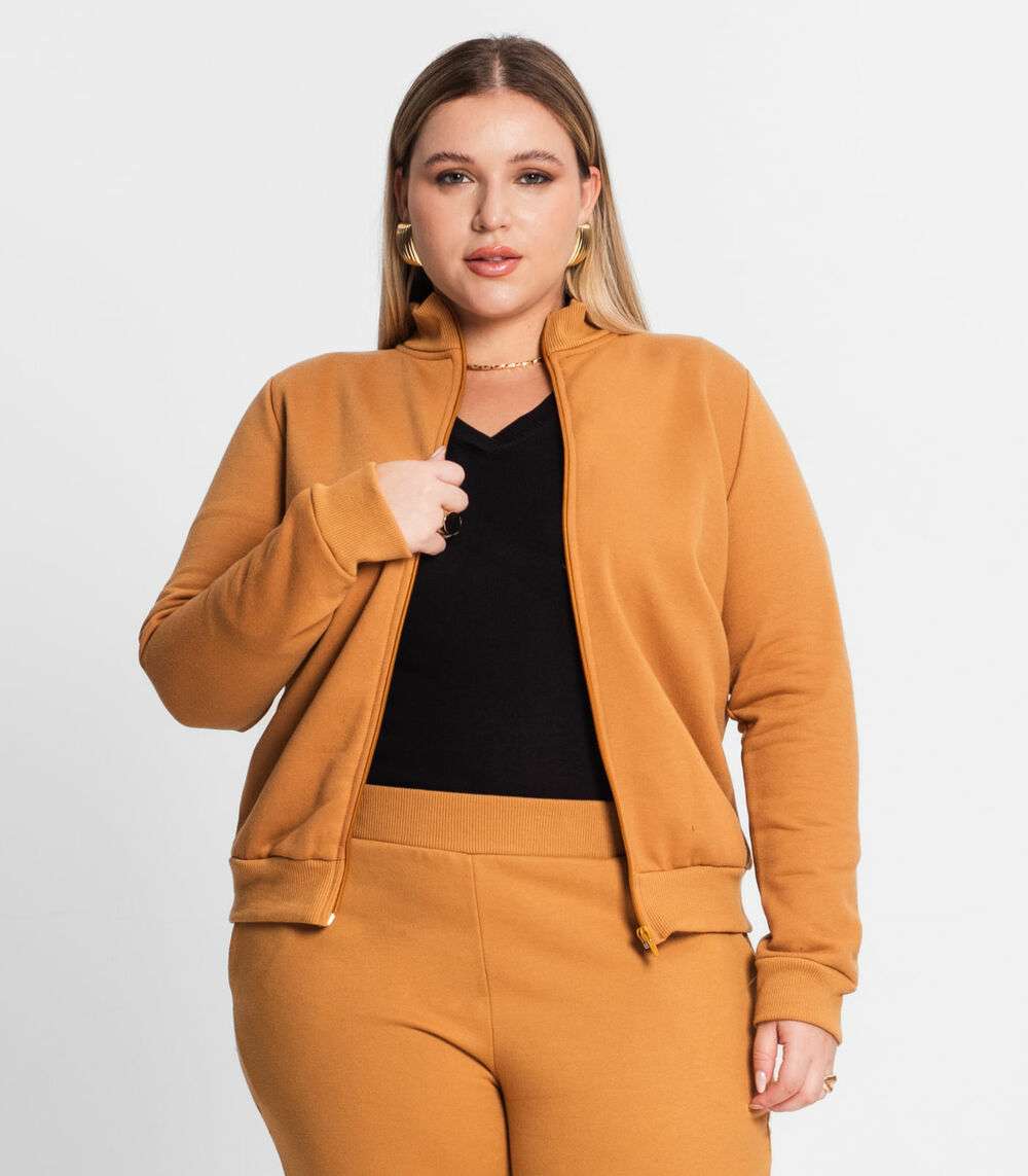 Jaqueta Feminina Em Moletom Plus Size Rovitex Marrom
