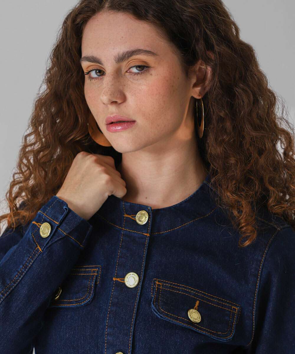 Jaqueta Feminina Jeans Bolsos Marisa Azul