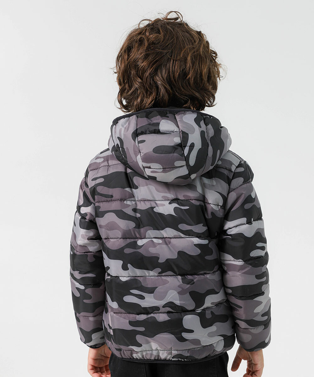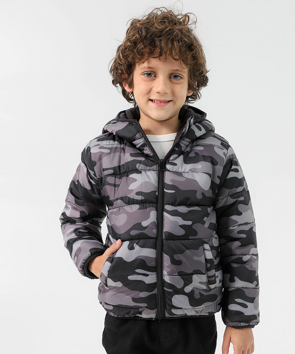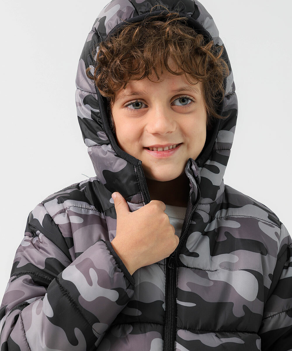 Jaqueta Infantil Puffer Camuflada Marisa Tam 4 a 10 Cinza