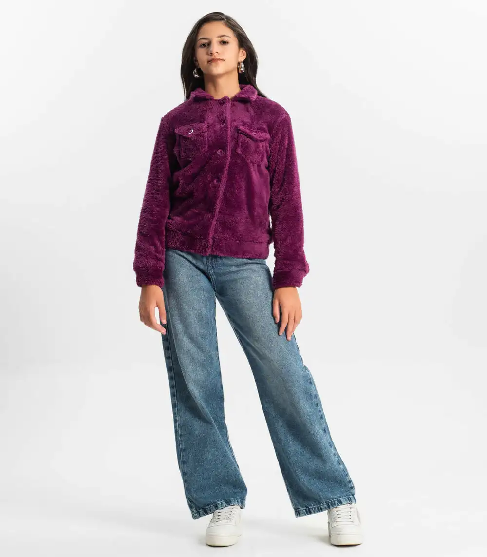 Jaqueta Juvenil Feminina Com Pelo Minty Roxo