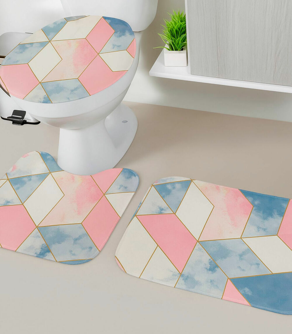Jogo De Banheiro Estampado Tapetes Junior Rosa