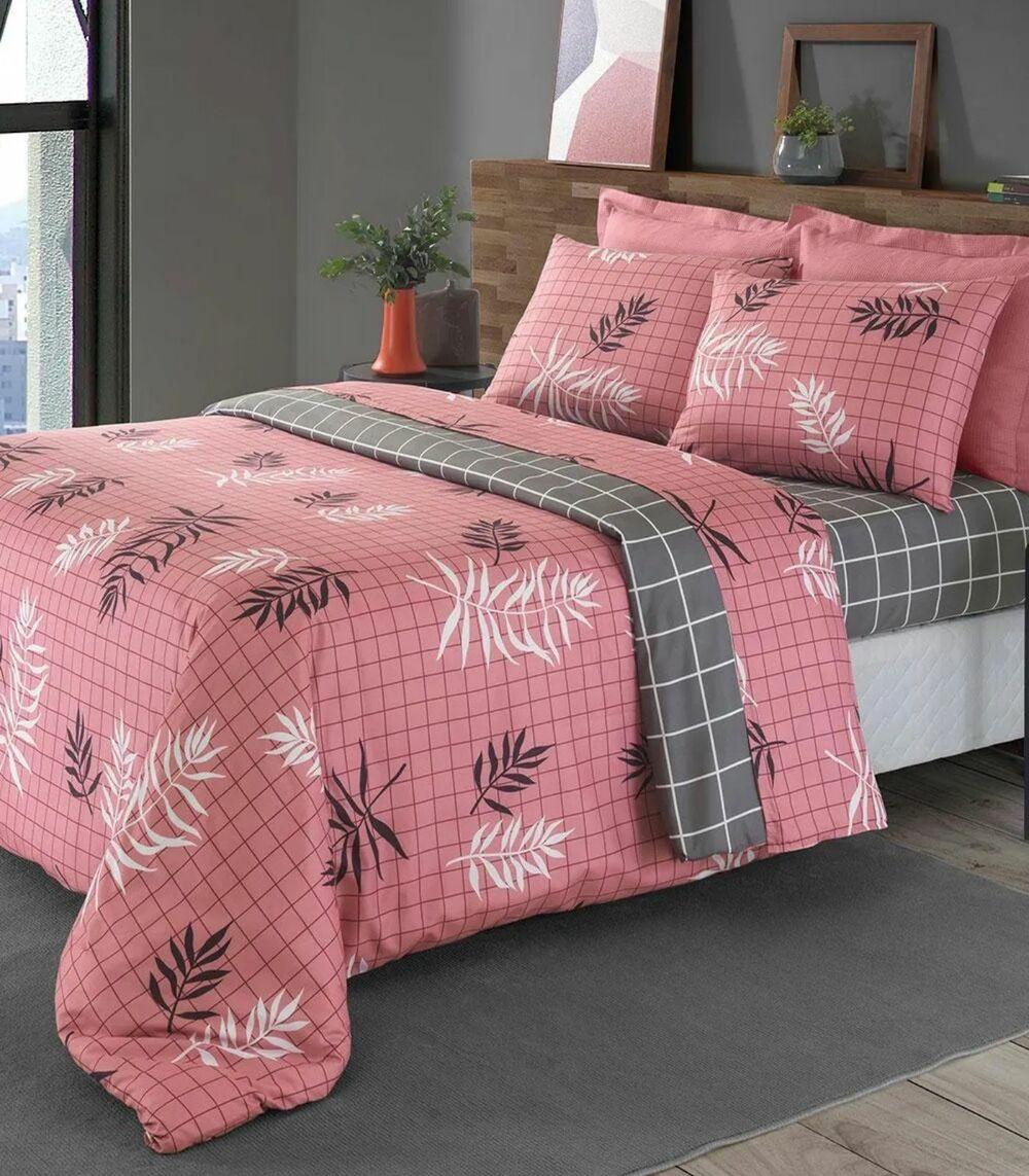 Jogo De Cama 200 Fios Queen 4 Peças Lar E Lazer Rosa