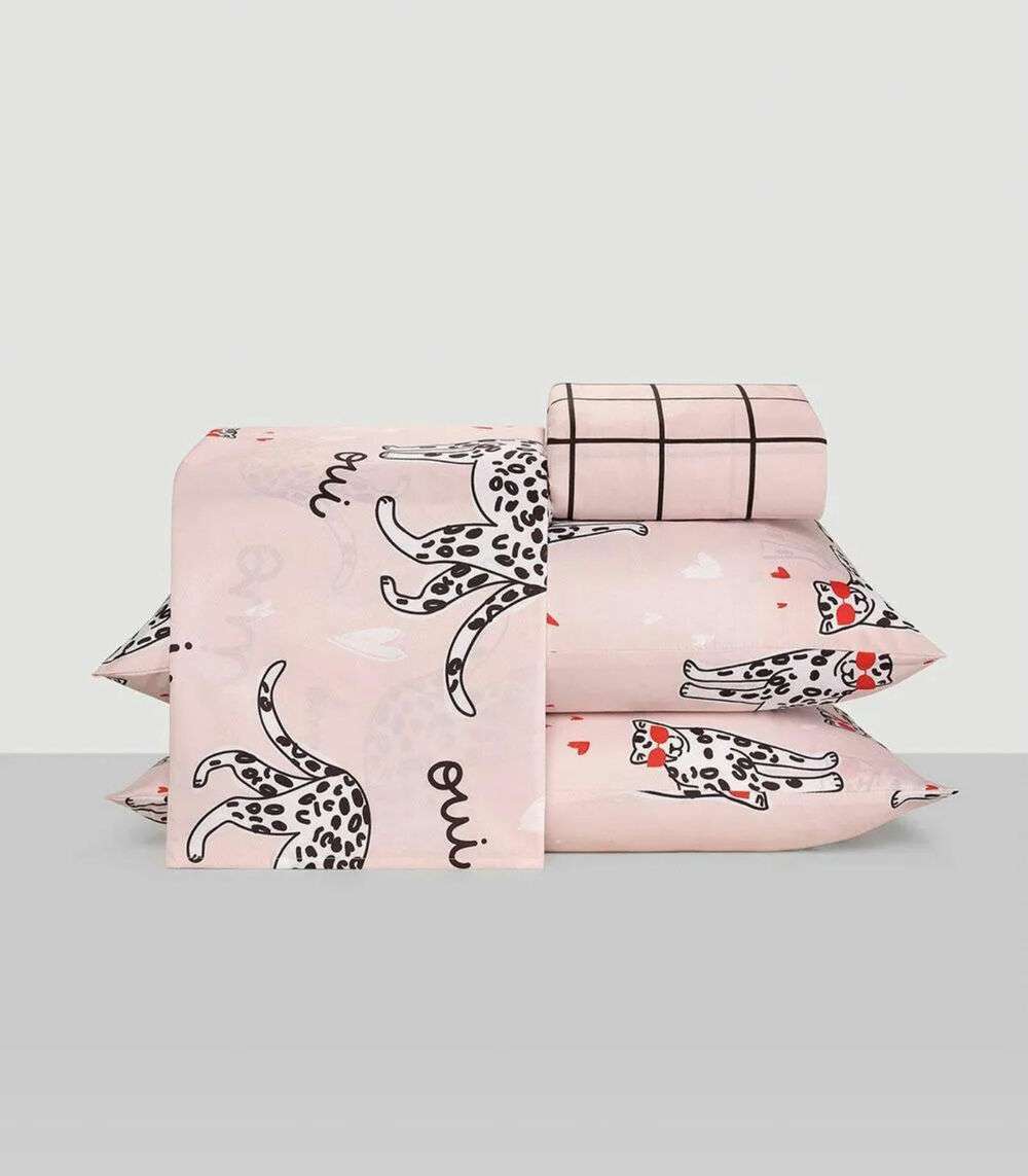 Jogo De Cama Queen Leopardo 4 Peças Lar E Lazer Rosa