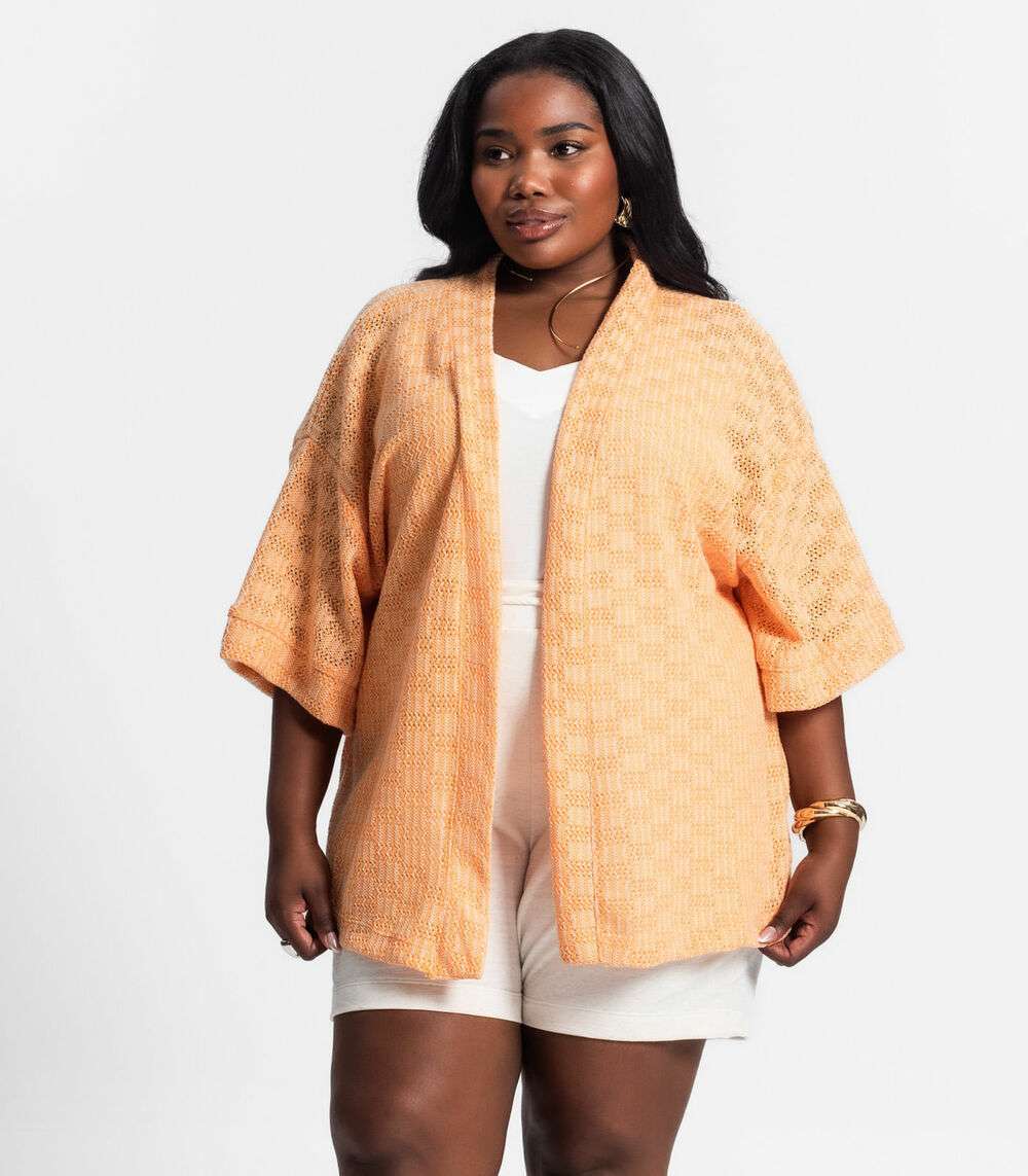 Kimono Feminino Plus Size Em Tricot Secret Glam Laranja