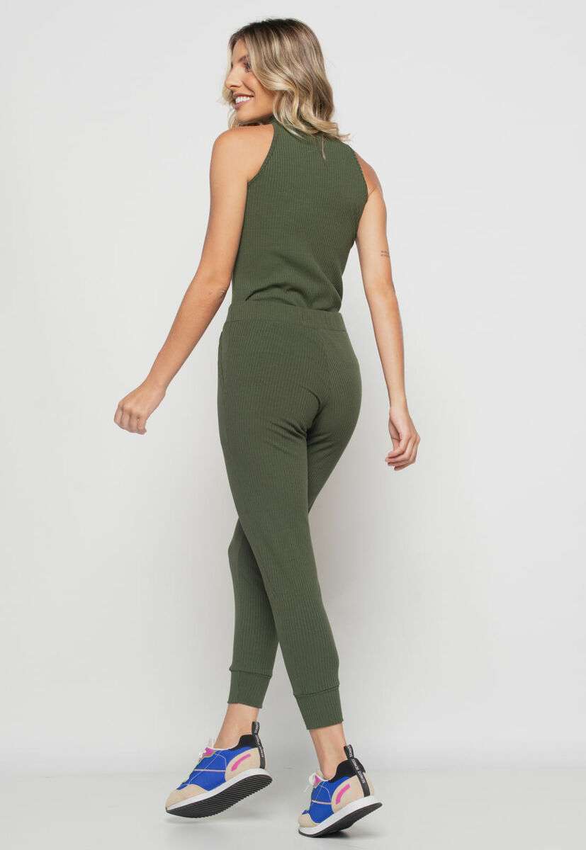 Kit 2 Calças Jogger Comfy Malha Canelada Verde e Preta