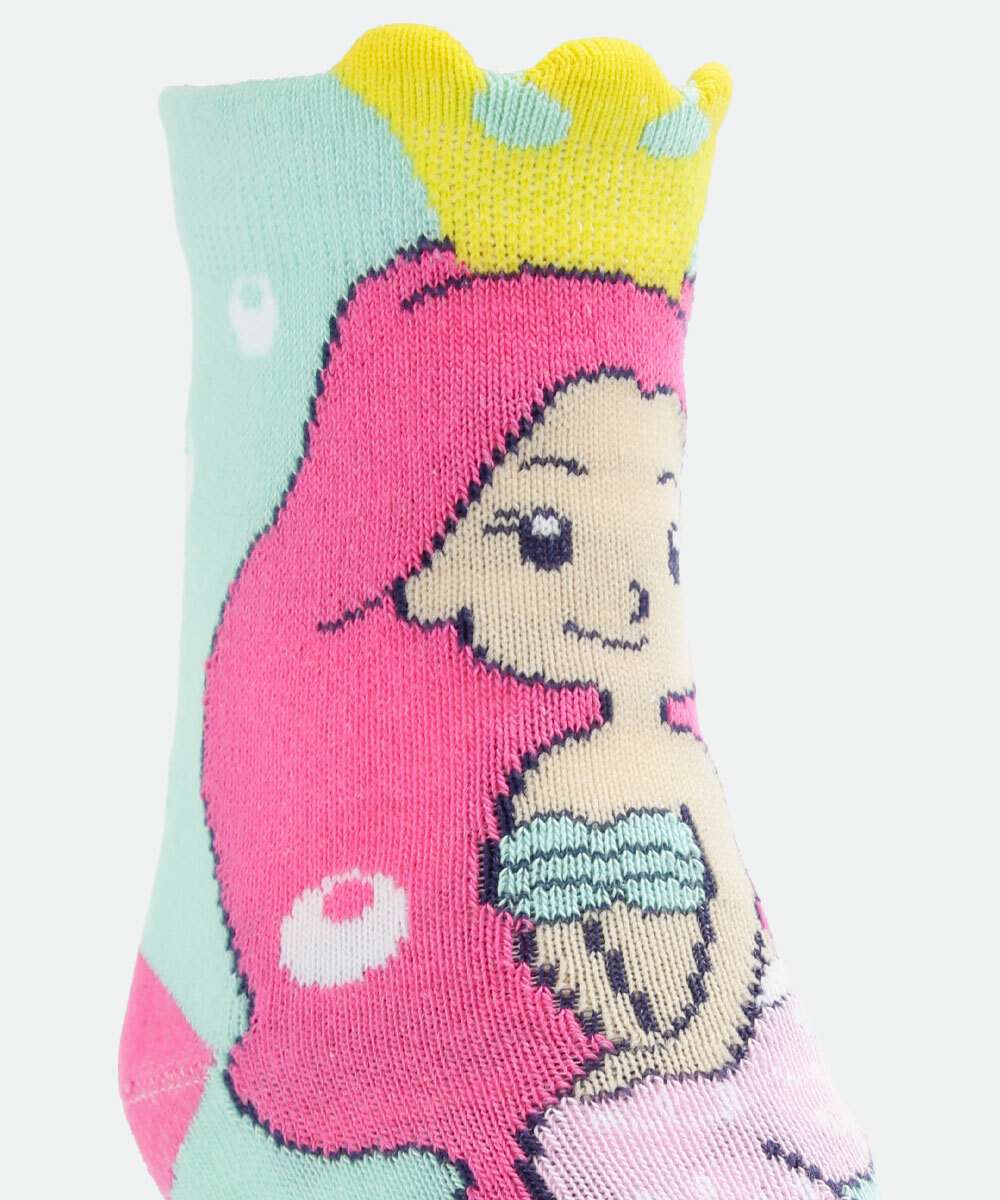 Kit 2 Pares Meias Infantil Soquete Estampa Sereia
