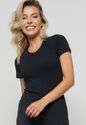 Kit 3 Blusas Básicas Comfy Malha Canelada Preta, Verde e Mescla