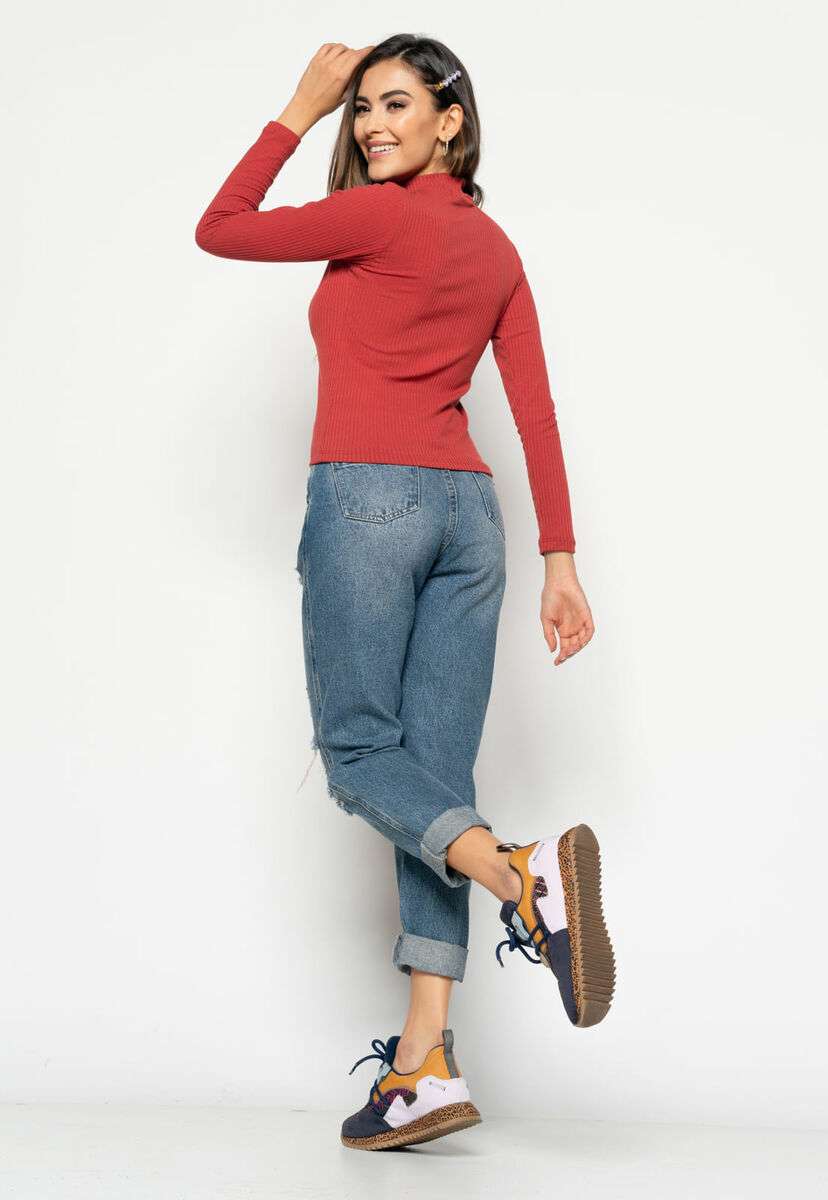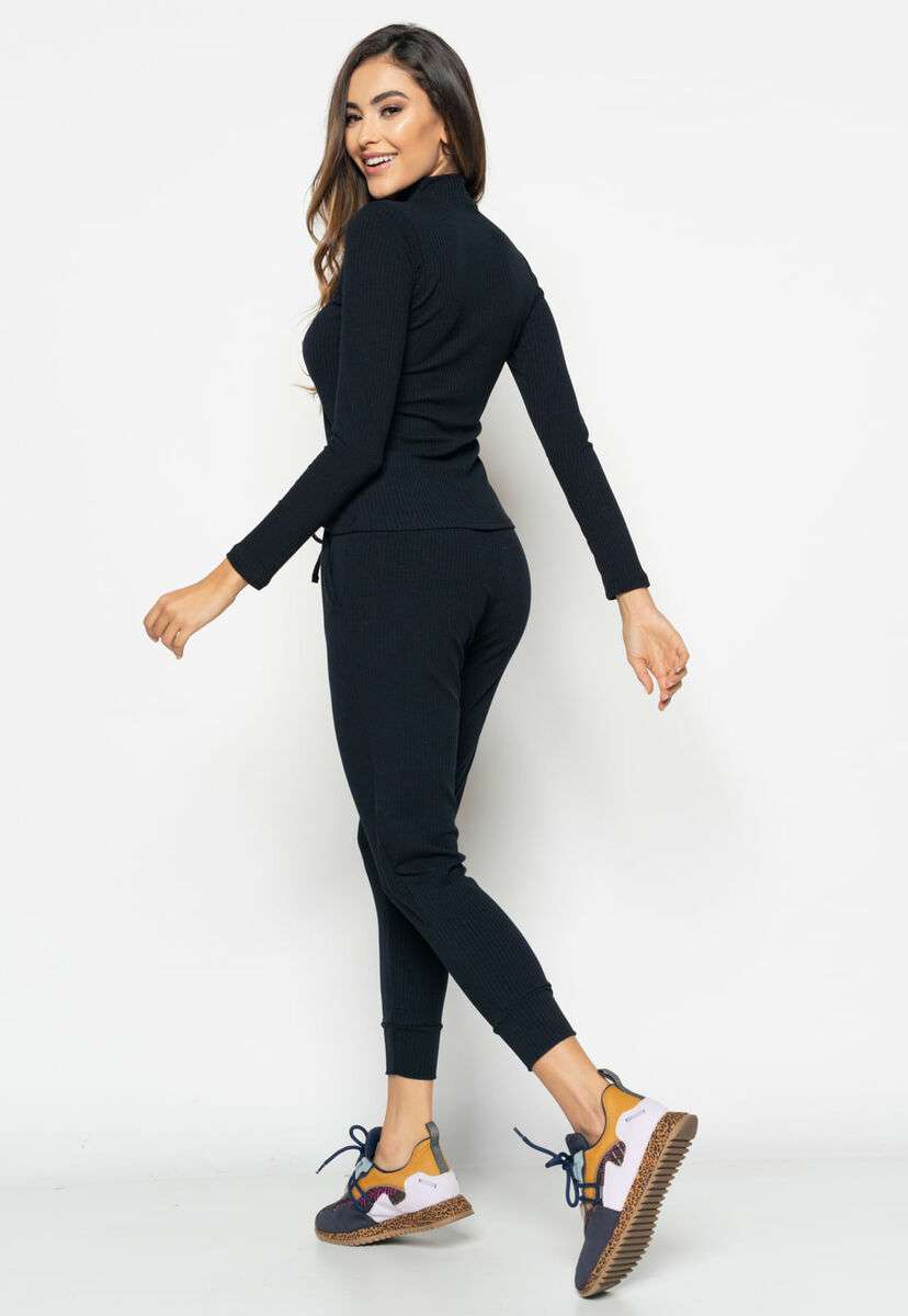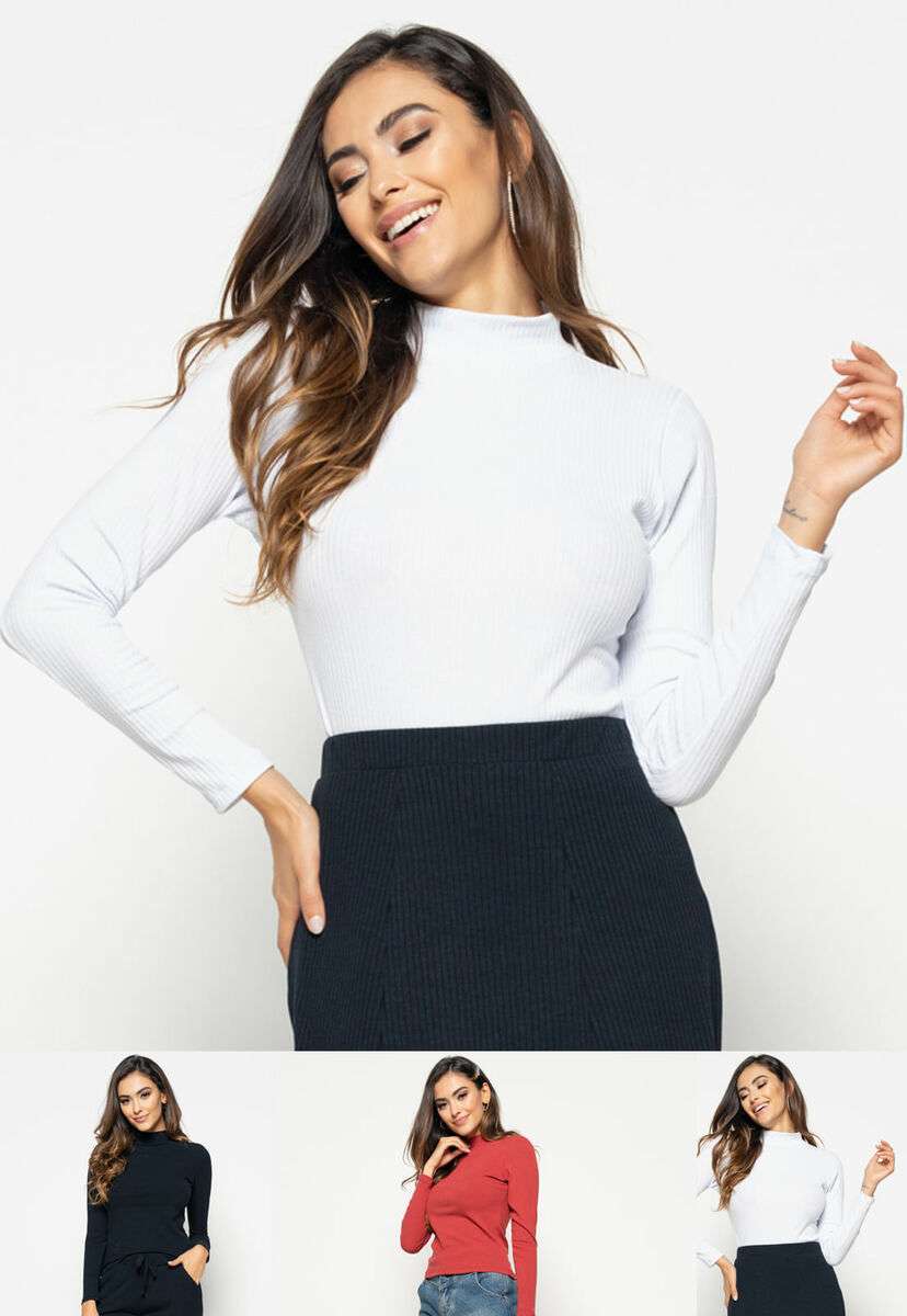 Kit 3 Blusas Gola Alta Manga Longa Malha Canelada Preta, Branca e Terracota