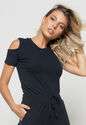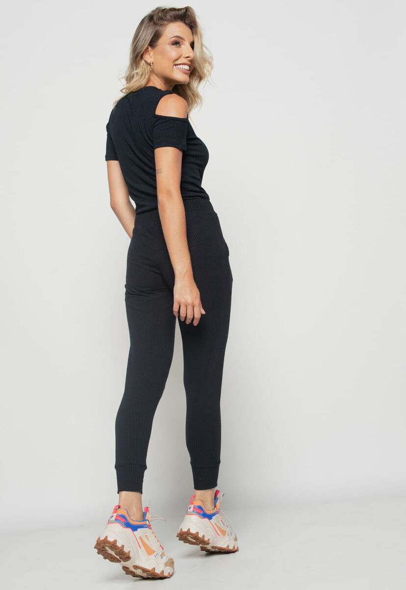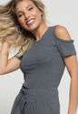 Kit 3 Blusas Ombro Vazado Malha Canelada Preta, Branca e Grafite