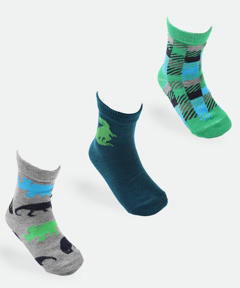Kit 3 Meias Infantil Estampa Dinossauros Marisa Verde