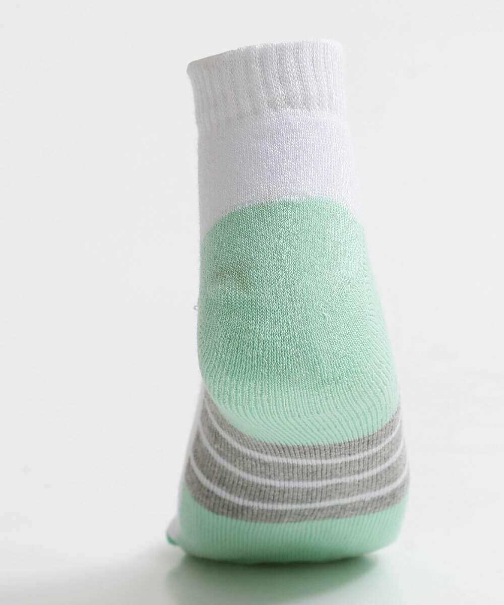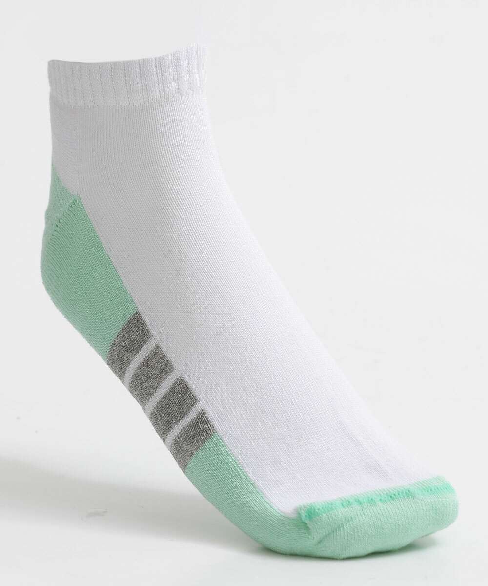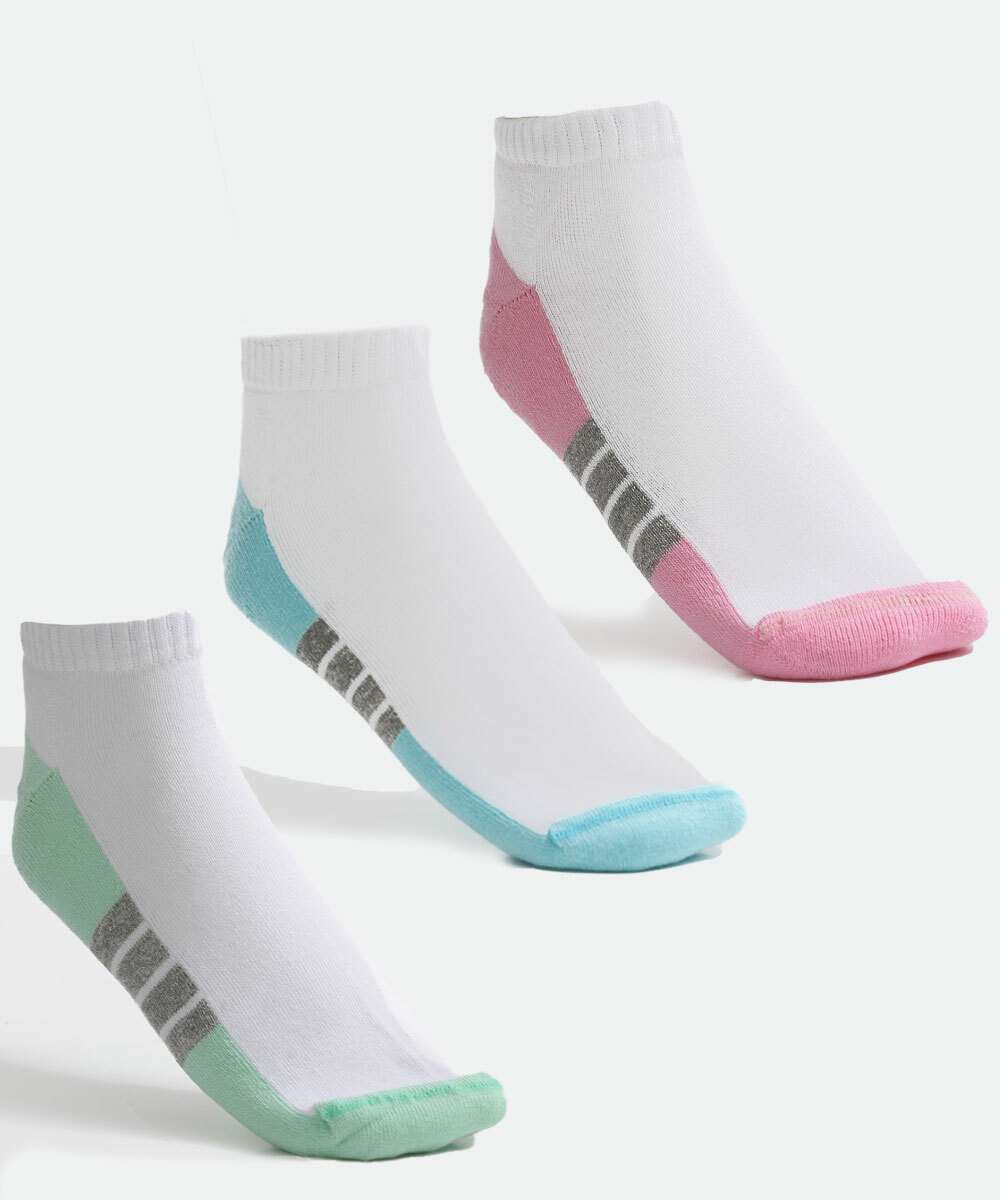 Kit feminino, composto por 3 pares de meias modelo cano curto esportiva, confeccionadas em tecido malha. Possuem detalhes coloridos com listras, acabamento e costura no tom.