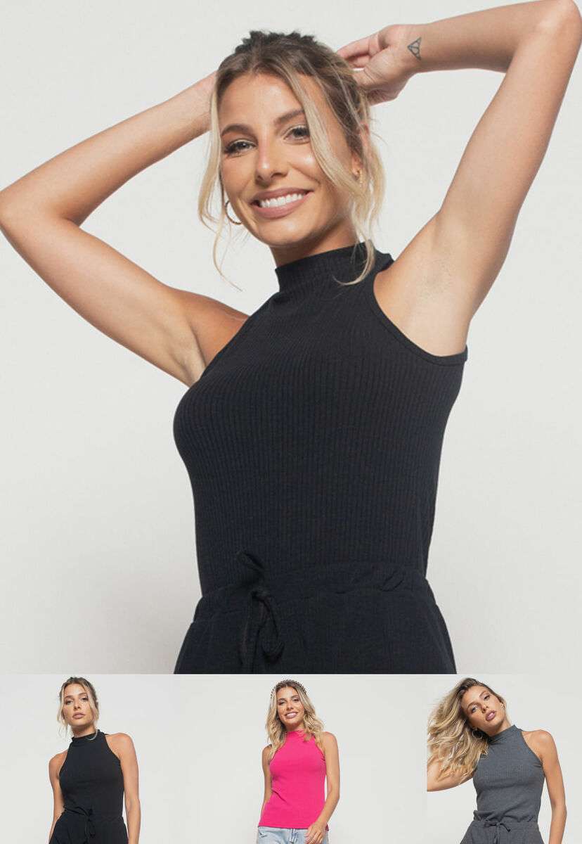Kit 3 Regatas Cava Americana Malha Canelada Preta, Pink e Grafite