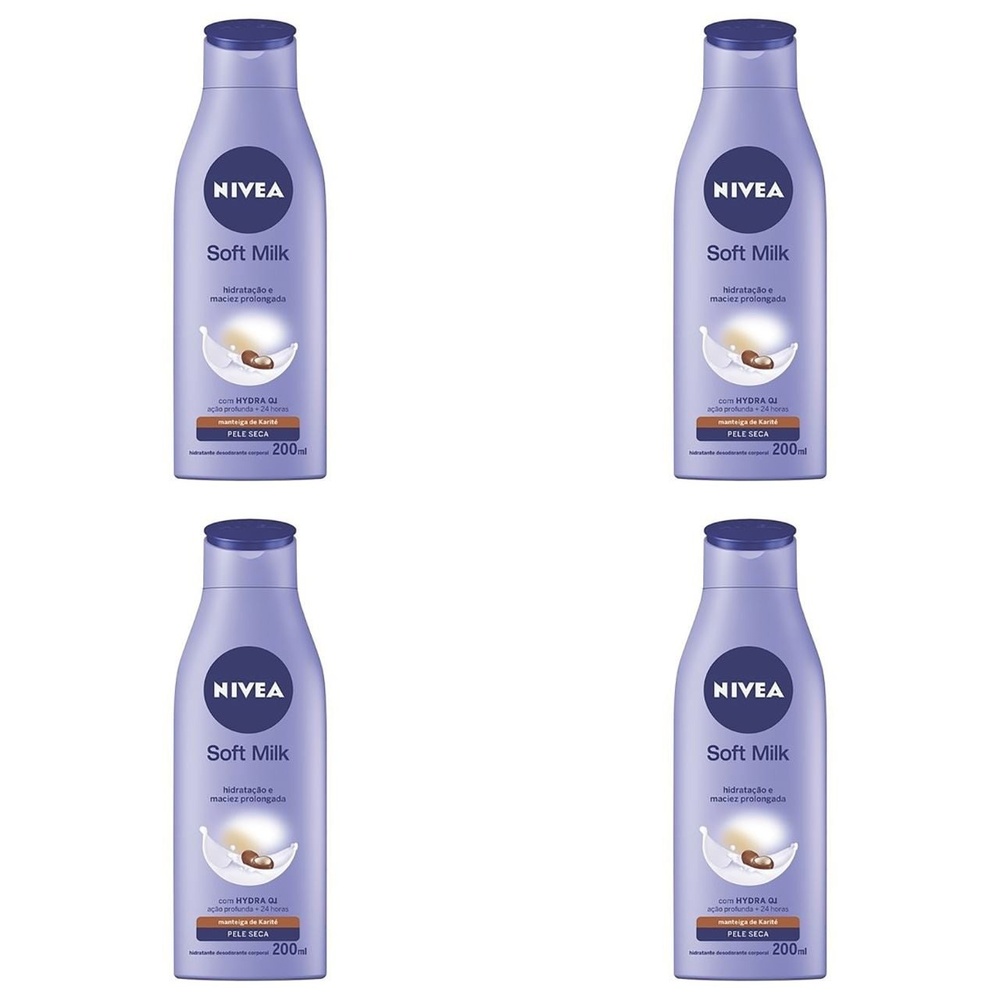 Kit c/4 Unidades de Hidratante Desodorante Soft Milk 200ml. Hidratante Desodorante Soft Milk 200ml é a solução perfeita para quem busca hidratação intensa e frescor ao longo do dia. Com uma fórmula leve e de rápida absorção, esse hidratante proporciona uma sensação de pele suave e aveludada, ideal para o uso diário. Indicação: Recomendado para todos os tipos de pele, especialmente aquelas que precisam de hidratação e nutrição. Benefícios: - Hidratação Profunda: Enriquecido com ingredientes que promovem a nutrição e a suavidade da pele. - Frescor Duradouro: O efeito desodorante garante uma sensação de frescor prolongado. - Textura Leve: A fórmula é rapidamente absorvida, sem deixar resíduos pegajosos. Modo de Uso: Aplique o Hidratante Desodorante Soft Milk 200ml sobre a pele limpa e seca, massageando suavemente até total absorção. Utilize diariamente para melhores resultados. Resultado: Pele hidratada, macia e com um aroma suave que refresca seus sentidos! Composição: Fórmula desenvolvida com ingredientes que respeitam a pele e proporcionam uma experiência sensorial única. Precauções: Manter fora do alcance de crianças. Evitar o contato com os olhos. Em caso de irritação, suspender o uso. Informações Adicionais: Produto não testado em animais e dermatologicamente testado. Transforme sua rotina de cuidados com o Hidratante Desodorante Soft Milk 200ml e sinta a diferença na sua pele!