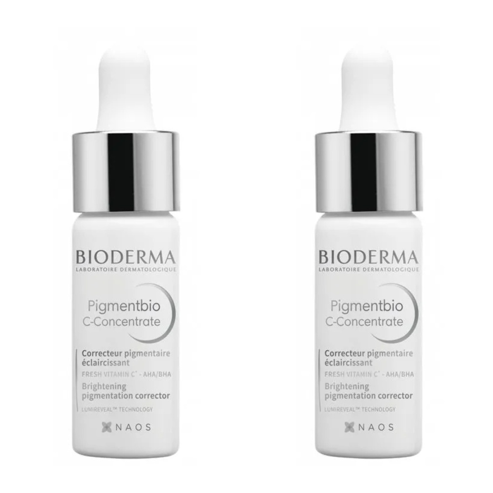 Kit com 2 Unidades de Pigmentbio C Concentrate Sérum Clareador Bioderma 15ml. A fórmula inédita de Pigmentbio C-Concentrate conta com a patente LumiReveal™, que promove uma ação clareadora graças à combinação com Azelato de Lisina, Andrographolide, Glabridina e a patente Epidermactiv™ - juntos, os ativos recuperam a luminosidade e tonalidade naturais da pele. O sérum também contém 10% de ácidos, composto por 8% de ácido glicólico e 2% de ácido salicílico, garantindo um efeito peeling com uma potente renovação celular, sem causar descamação. A tecnologia de Pigmentbio C-Concentrate ainda apresenta 2% de vitamina C glicosada - um formato inovador que aumenta em 3x sua estabilidade e proteção contra a oxidação, o que garante uma ação prolongada do ativo. As vitaminas C e E, em sinergia, garantem uma dupla ação antioxidante que protege a pele contra os sinais do envelhecimento. Além de recuperar e equilibrar a barreira de proteção natural da pele, Pigmentbio C-Concentrate promove 8h de hidratação* com o poder da niacinamida. O resultado é uma pele fortalecida, iluminada, renovada e livre das marcas escuras causadas pela hiperpigmentação. Benefícios-Reduz a intensidade e a extensão das marcas escurecidas-Previne o reaparecimento das marcas escurecidas -Suaviza e afina a textura da pele-Uniformiza e ilumina a pele (a luminosidade da pele é restaurada)-Hidrata durante 8 horas-Não comedogênico - Textura leve em gel-creme- Rápida absorção