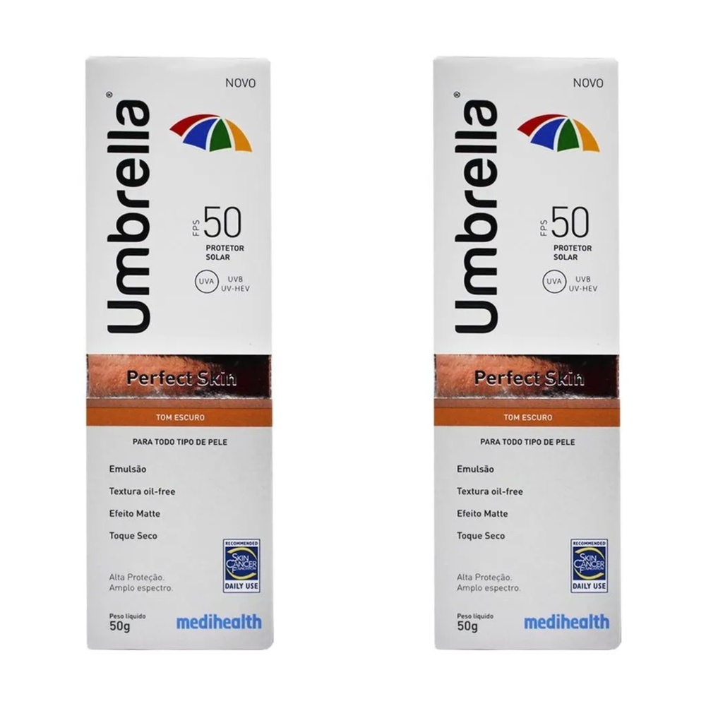 Kit com 2 Unidades de Protetor Solar Perfect Skin Escuro Umbrella FPS 50 50g