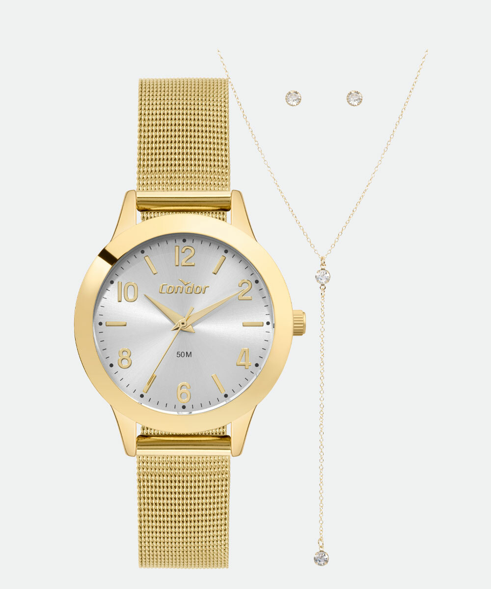 Kit Relógio Feminino Condor CO2035NLJK4K Dourado