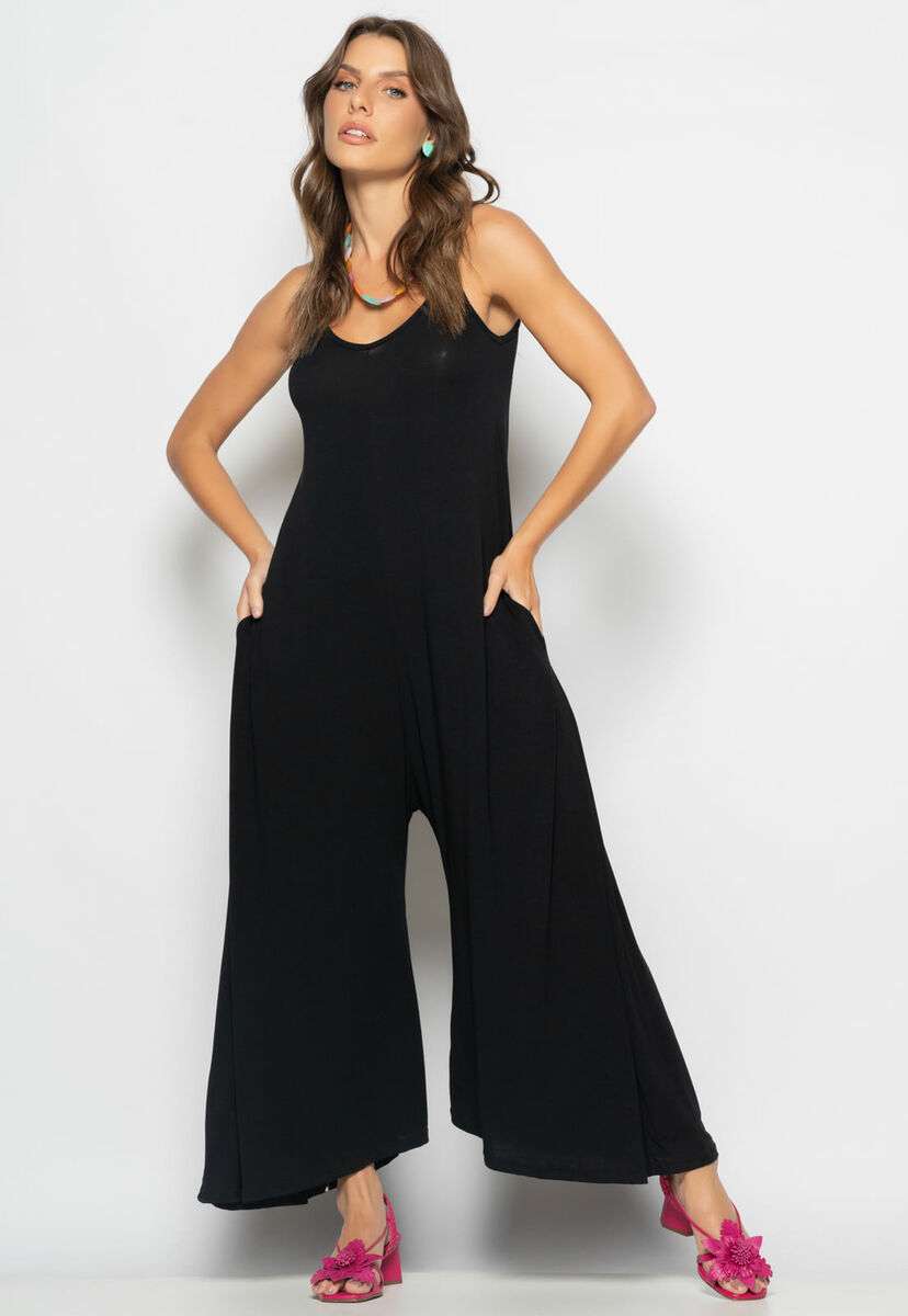 Macacão Alcinha Pantalona Malha Preto Salvatore