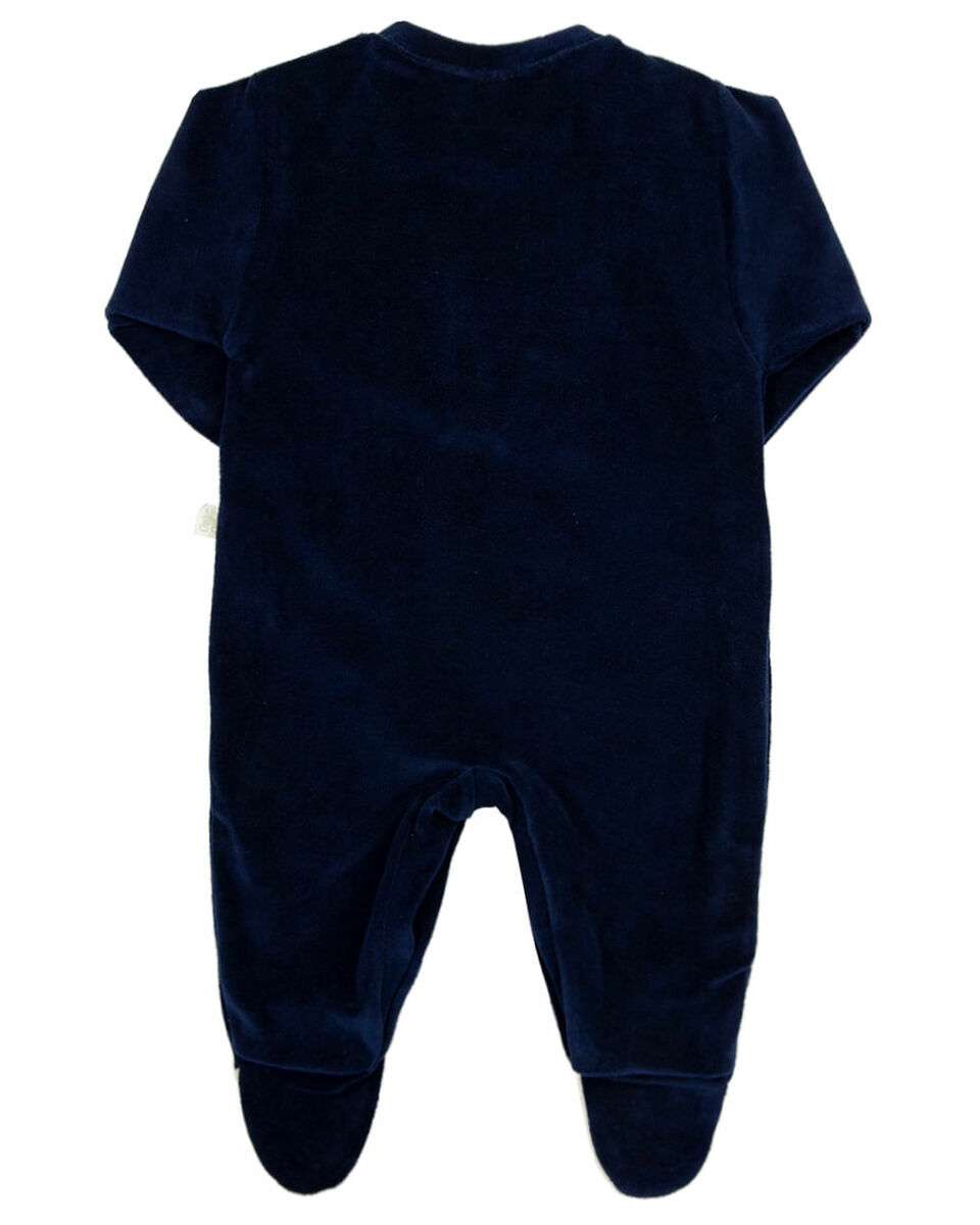 Macacão Bebe Plush Menino Bordado Urso Panda - Marinho