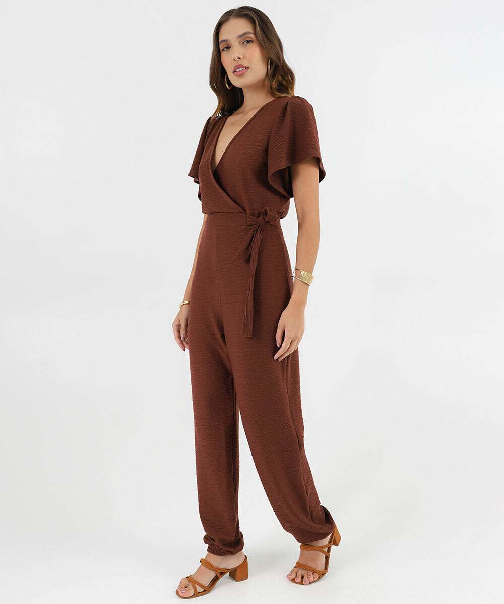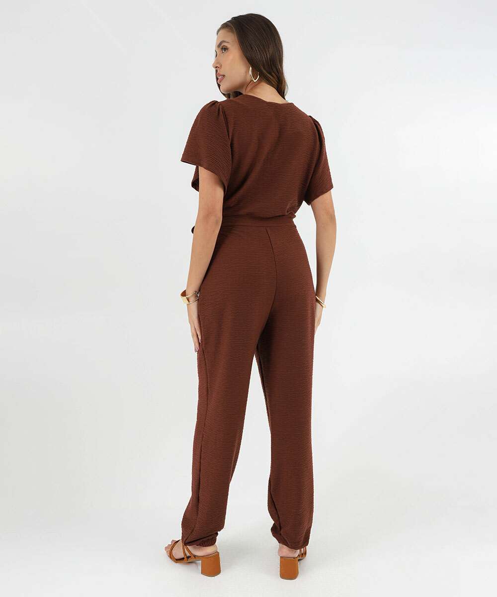 Macacão Feminino Jogger Amarração Marisa Marrom