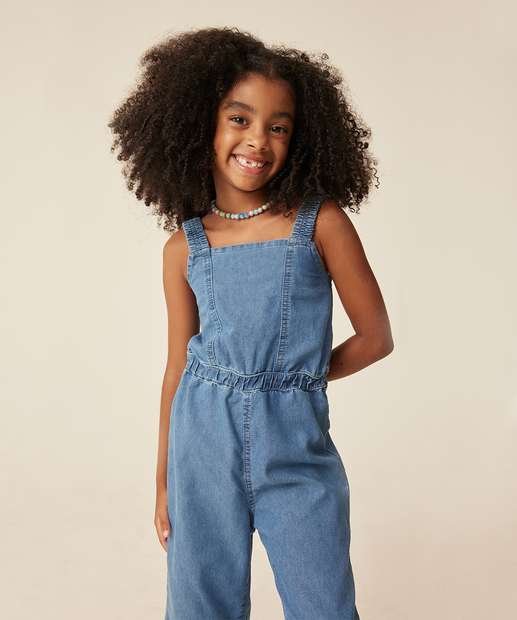 Macacão Infantil Jeans Pantacourt Tam 4 a 10