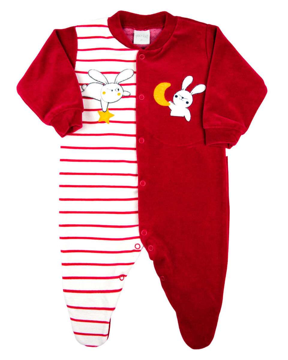 O design do macacão inclui detalhes de bordados com aplicações de coelhinhos, adicionando um toque de charme e elegância à peça. A abertura com botões de pressão facilita o vestir e despir do bebê, tornando as trocas de fraldas mais rápidas e menos estressantes. Além disso, os pezinhos fechados ajudam a manter os pés do bebê quentes, proporcionando uma sensação extra de conforto.