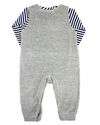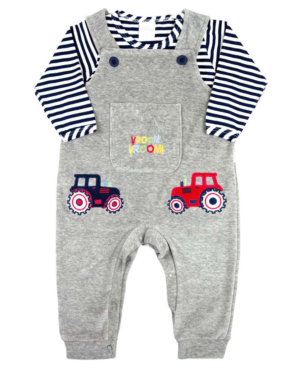 Macacao Salopete Bebe Menino Plush com Body Malha Listrada Bordados Aplicados de