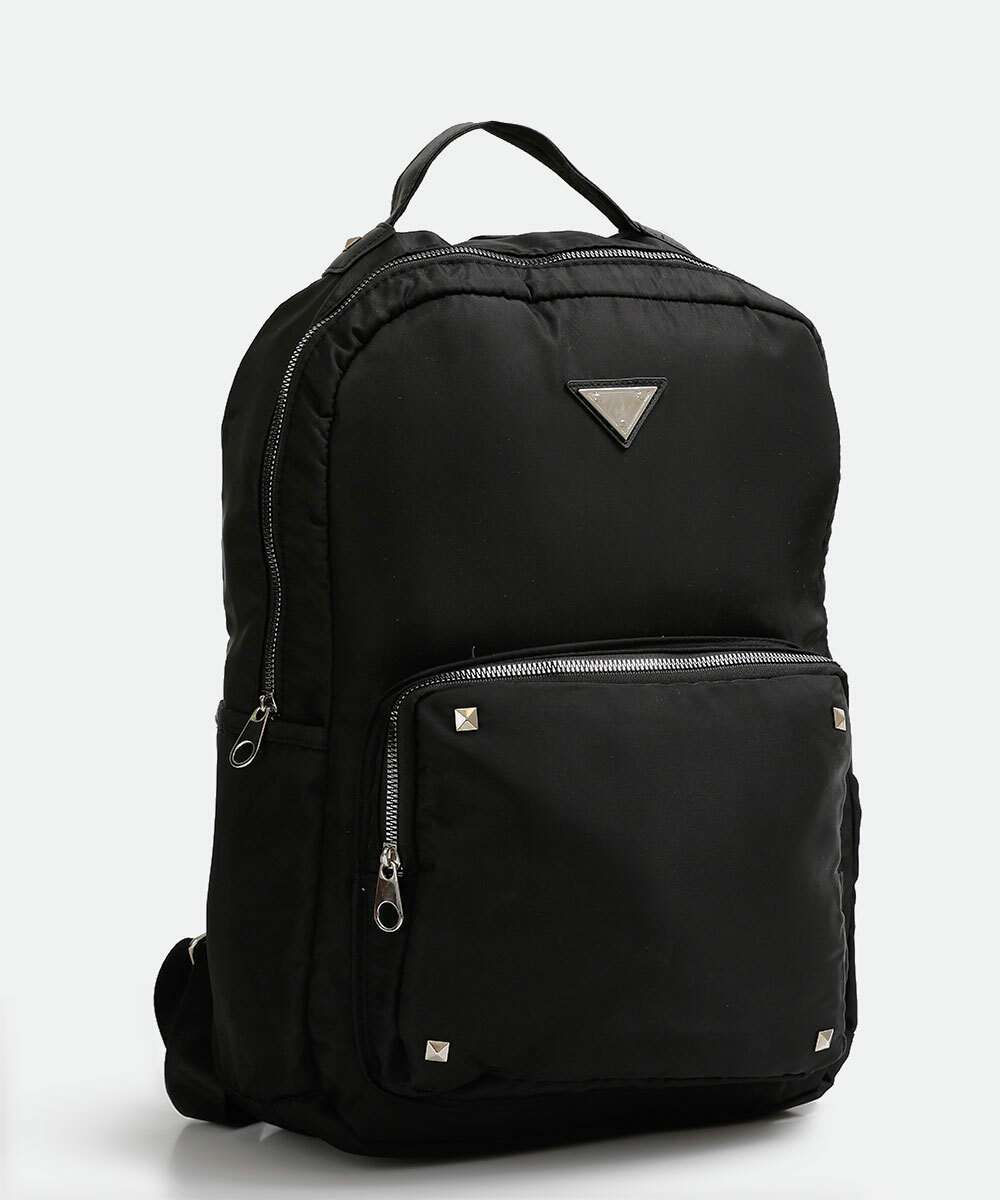 Mochila feminina confeccionada em material sintético. Possui repartição única com fechamento por zíper, bolso frontal, bolsos nas laterais, alça de mão, alças ajustáveis nas costas, acabamento e costura no tom.