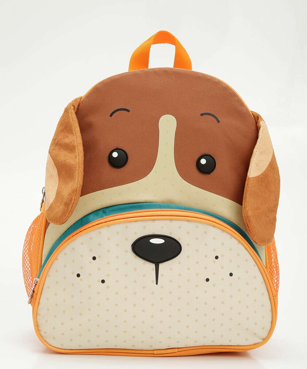 Mochila infantil ideal para meninas, confeccionada em tecido poliéster lona. Possui estampa Cachorro, bolso frontal, fechamento por zíper, repartição única, bolsos na lateral em tela, alça de mão, alças traseiras ajustáveis e acabamento em costura no tom.