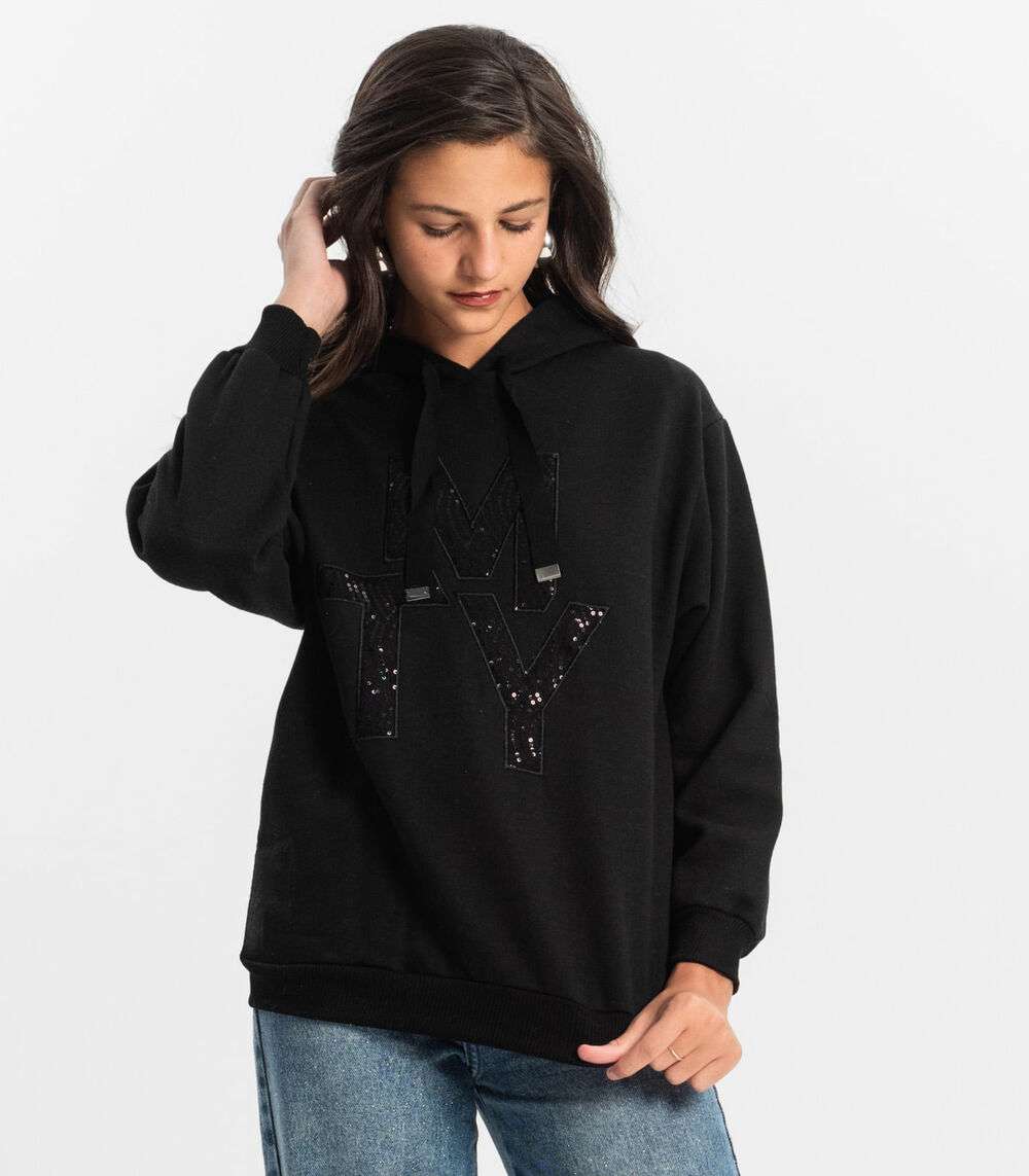 Moletom Juvenil Feminino Com Capuz Minty Preto